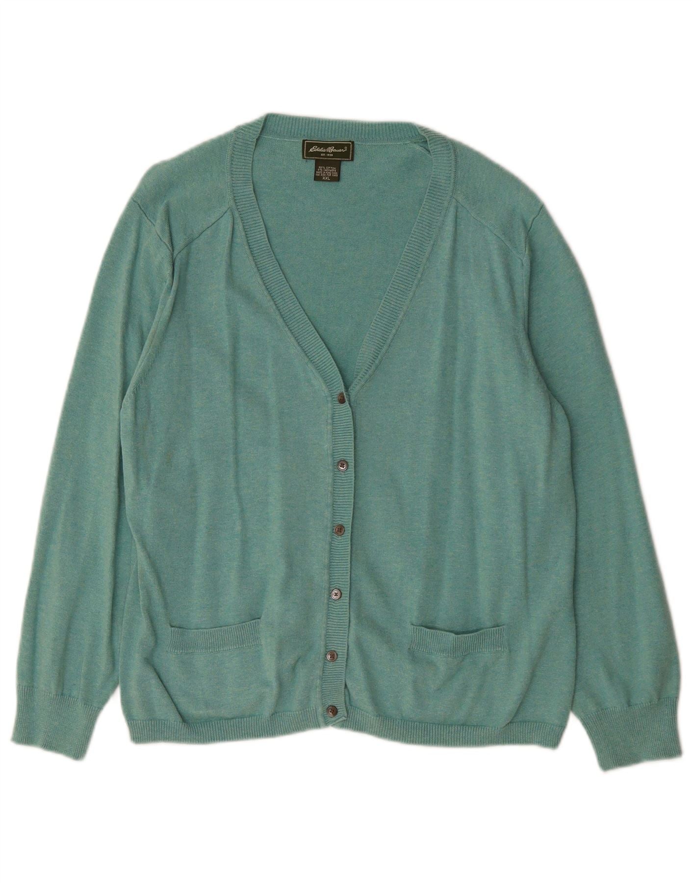 EDDIE BAUER Pull Cardigan Femme UK 20 2XL Vert Coton