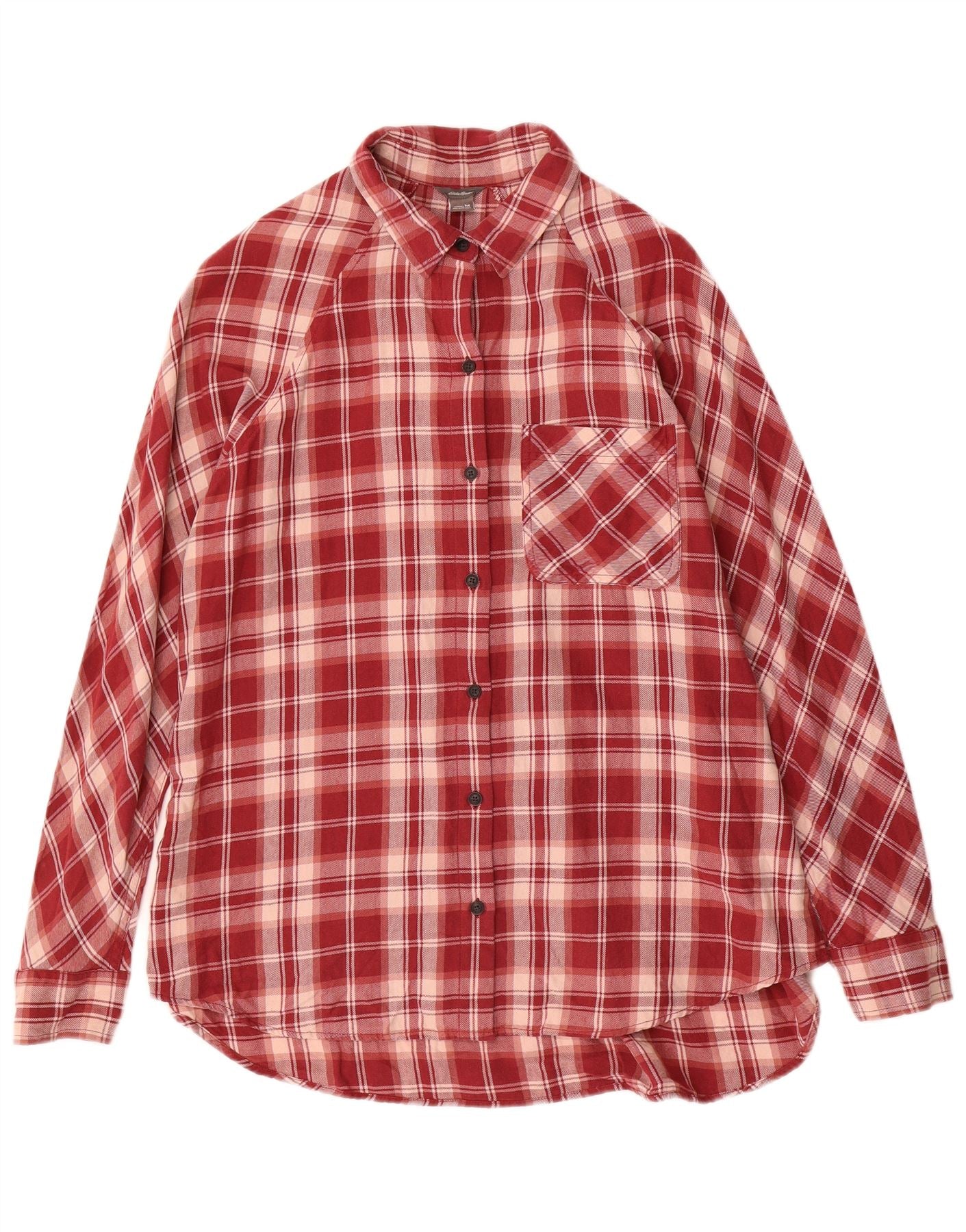 EDDIE BAUER Chemise longue en flanelle coupe ample pour femme UK 14 à carreaux rouges moyens