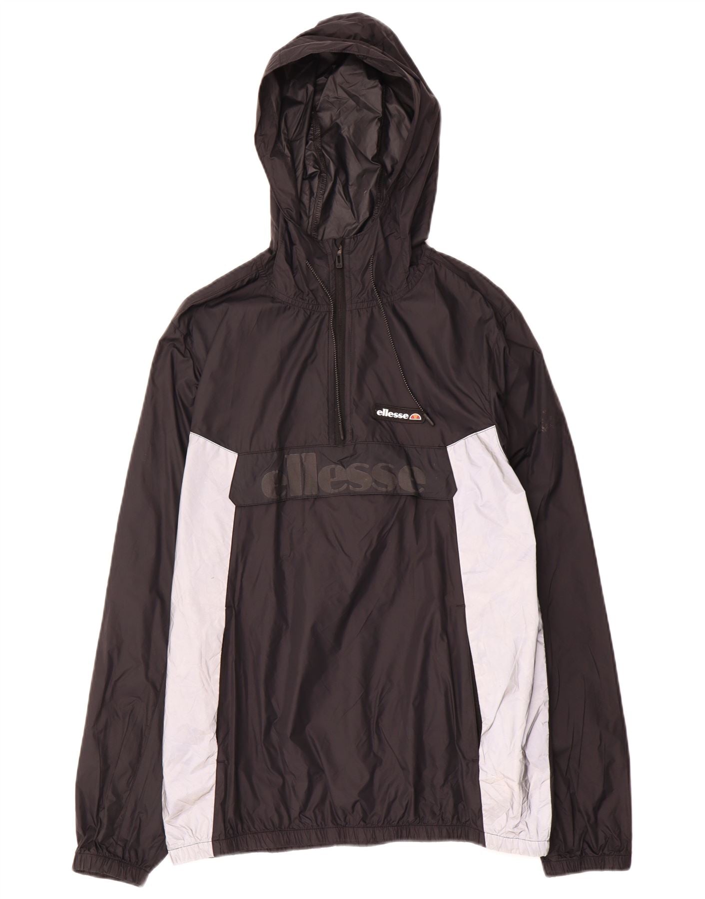 ELLESSE Veste anorak à capuche graphique pour homme UK 40 Large Black Colourblock