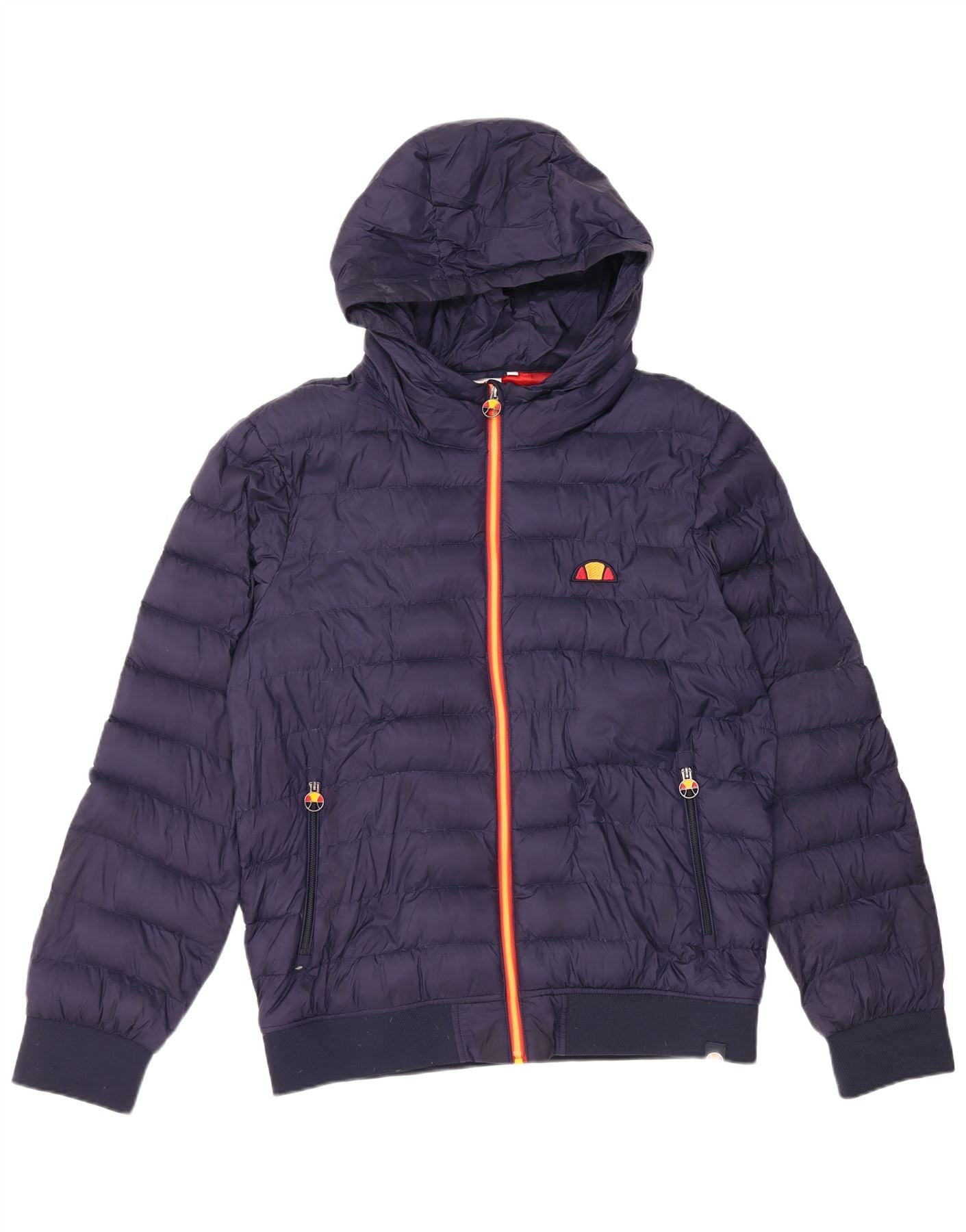 Ellesse Veste matelassée à capuche pour homme UK 40 Large Bleu Marine Nylon