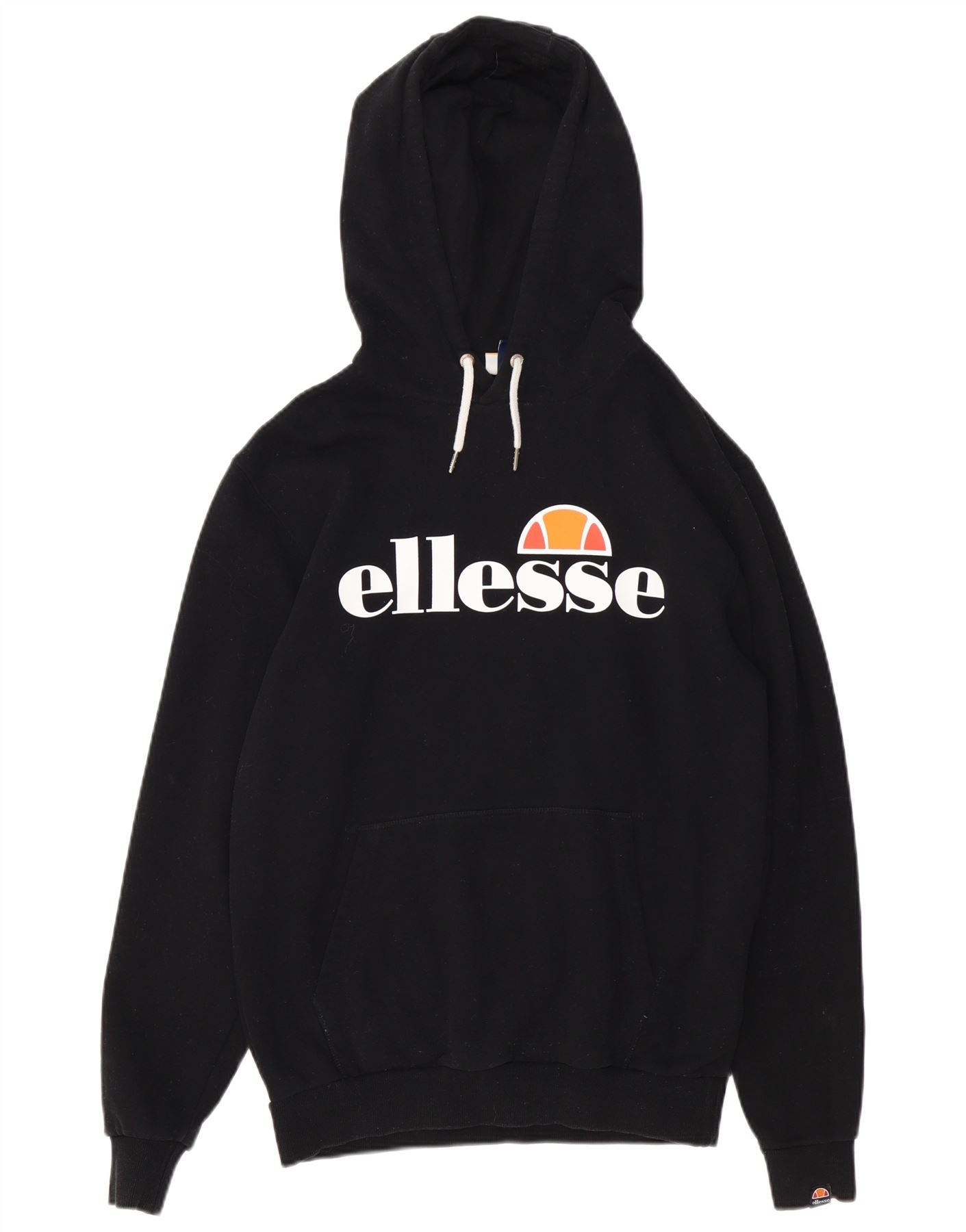 ELLESSE Pull à capuche graphique pour femme UK 14 en coton noir moyen