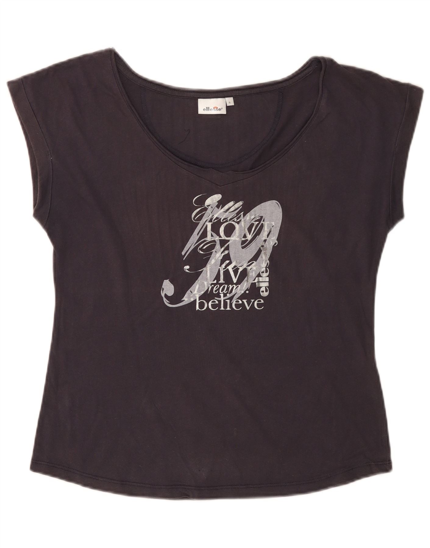 ELLESSE T-Shirt Graphique Femme UK 14 Large Bleu Marine Coton