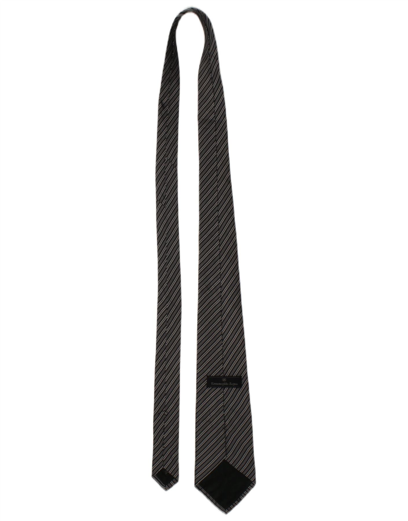 ERMENEGILDO ZEGNA Mens Tie One Size Black Striped Silk Classic