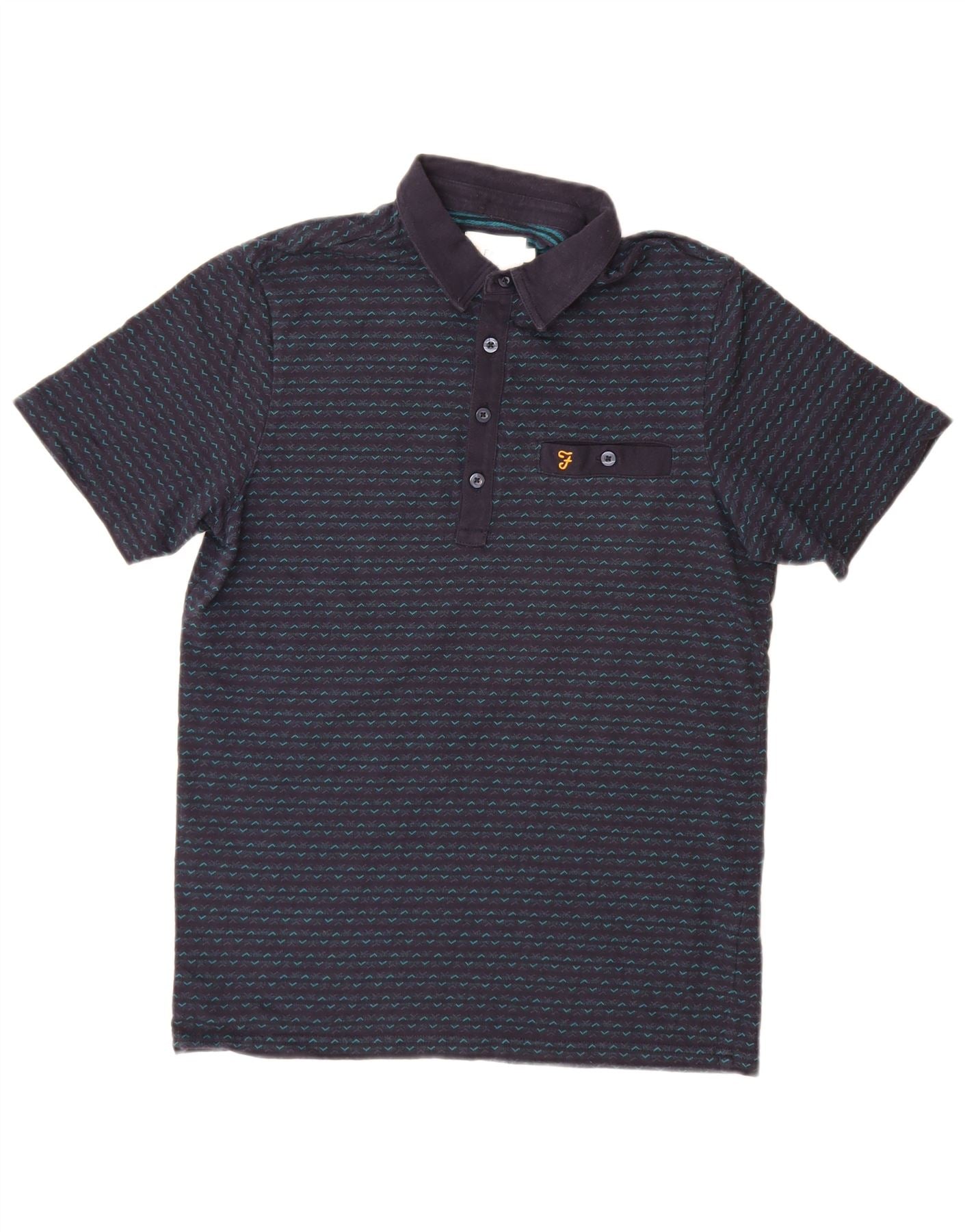 FARAH Polo Homme Bleu Marine Moyen Coton Géométrique