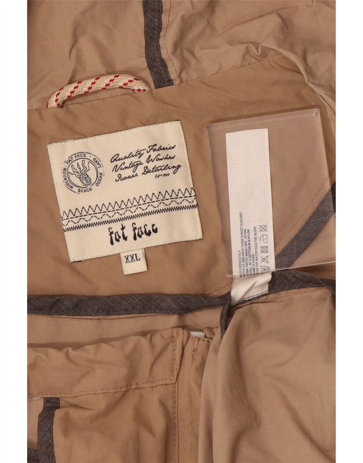 FAT FACE Veste coupe-vent à capuche pour homme UK 44 2XL Beige Coton