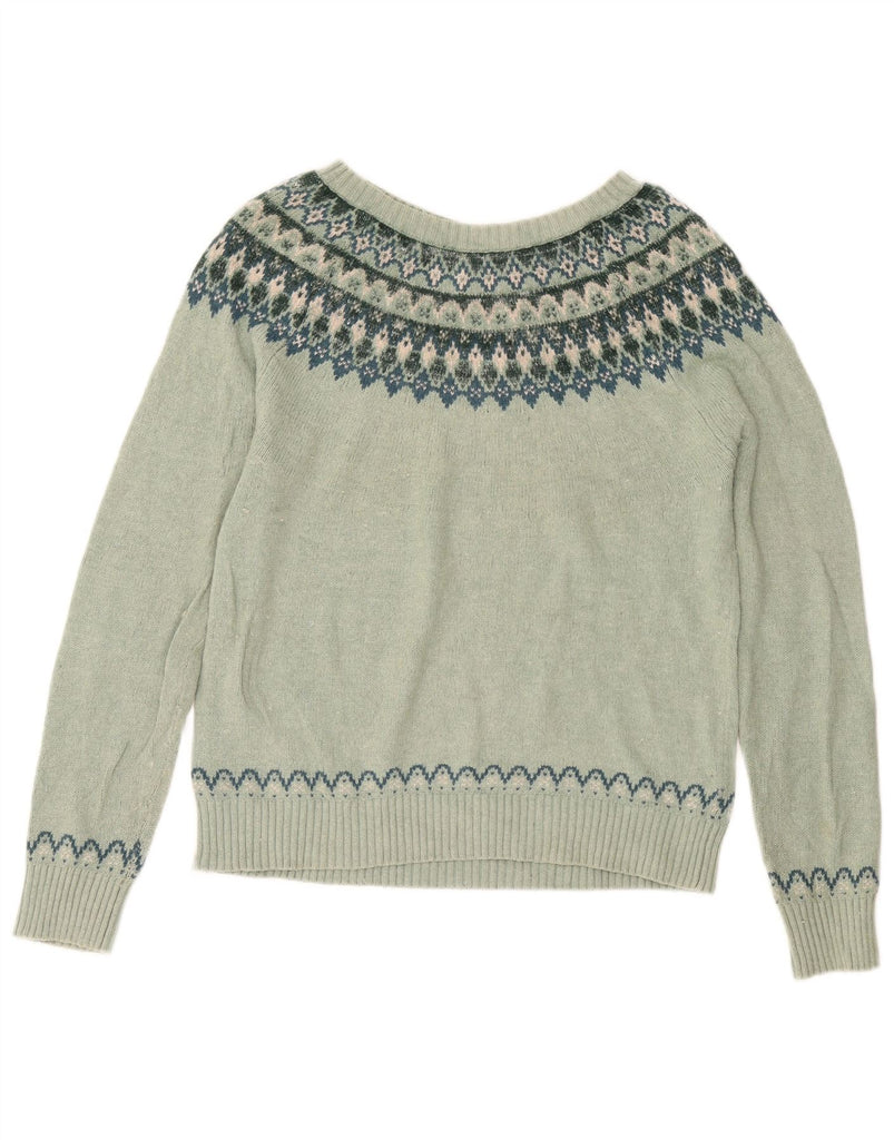 FAT FACE Womens Boat Neck Jumper Sweater UK 10 Small Green Fair Isle