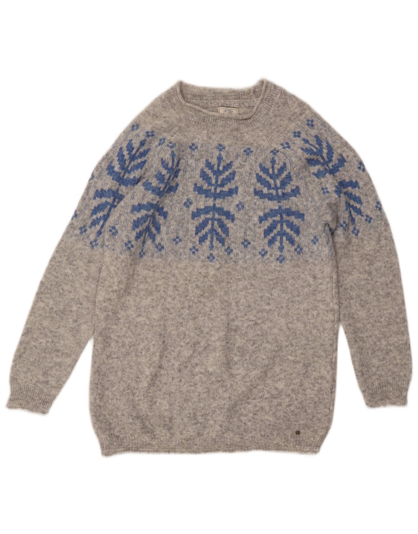 FAT FACE Pull à col rond pour femme UK 10 Petit Gris Fair Isle