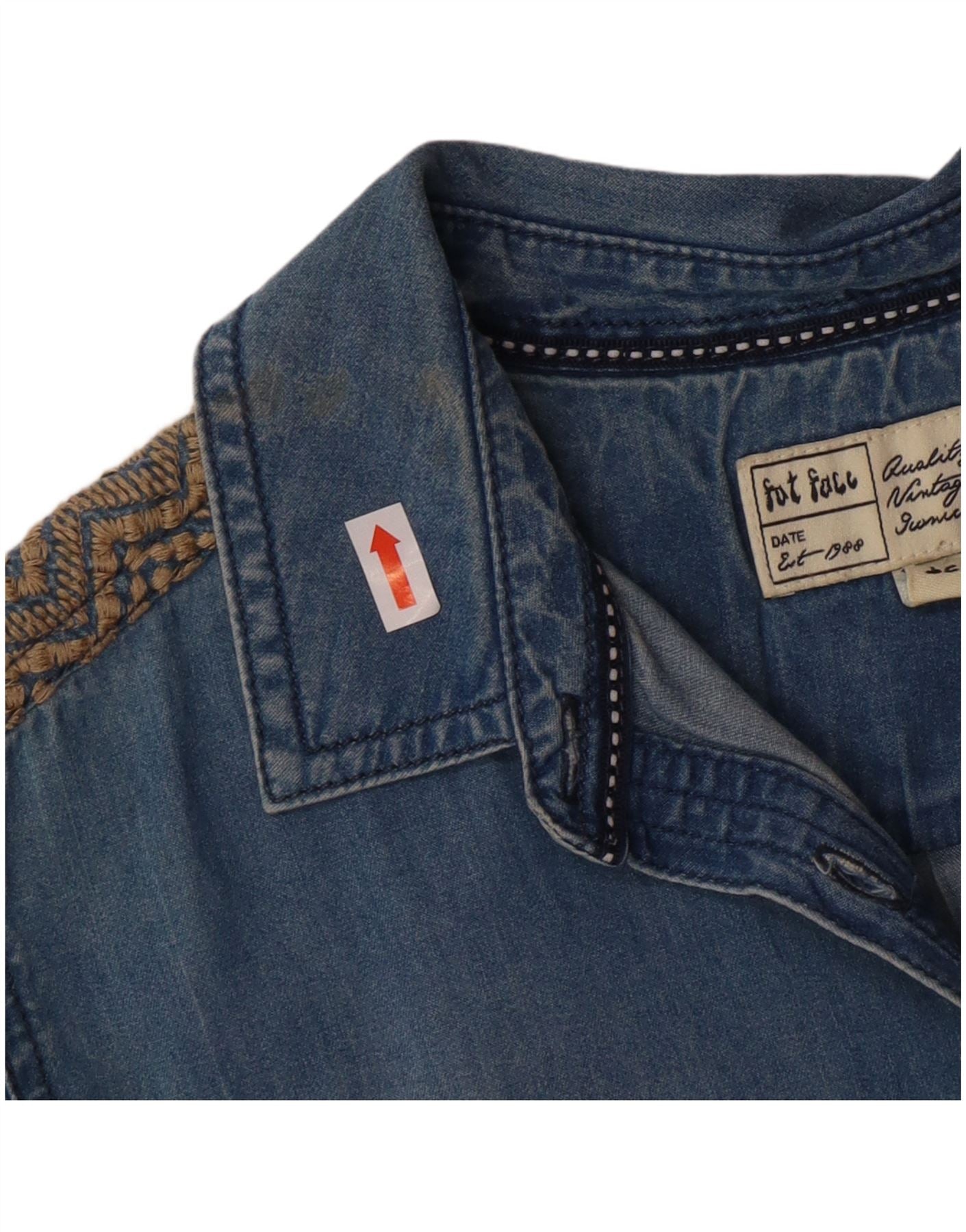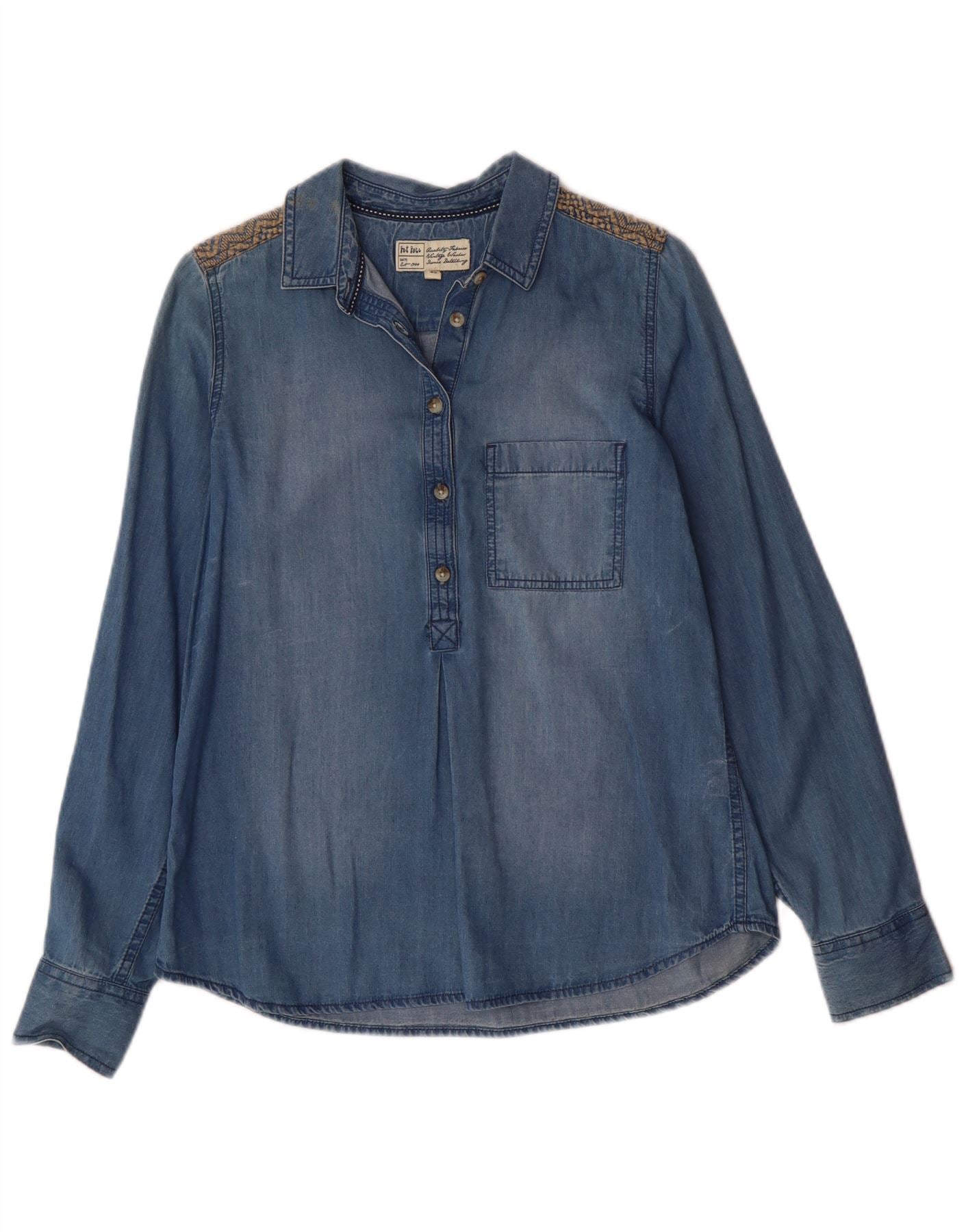 Fat Face Chemise pull en jean pour femme UK 12 Bleu moyen Coton Bohème