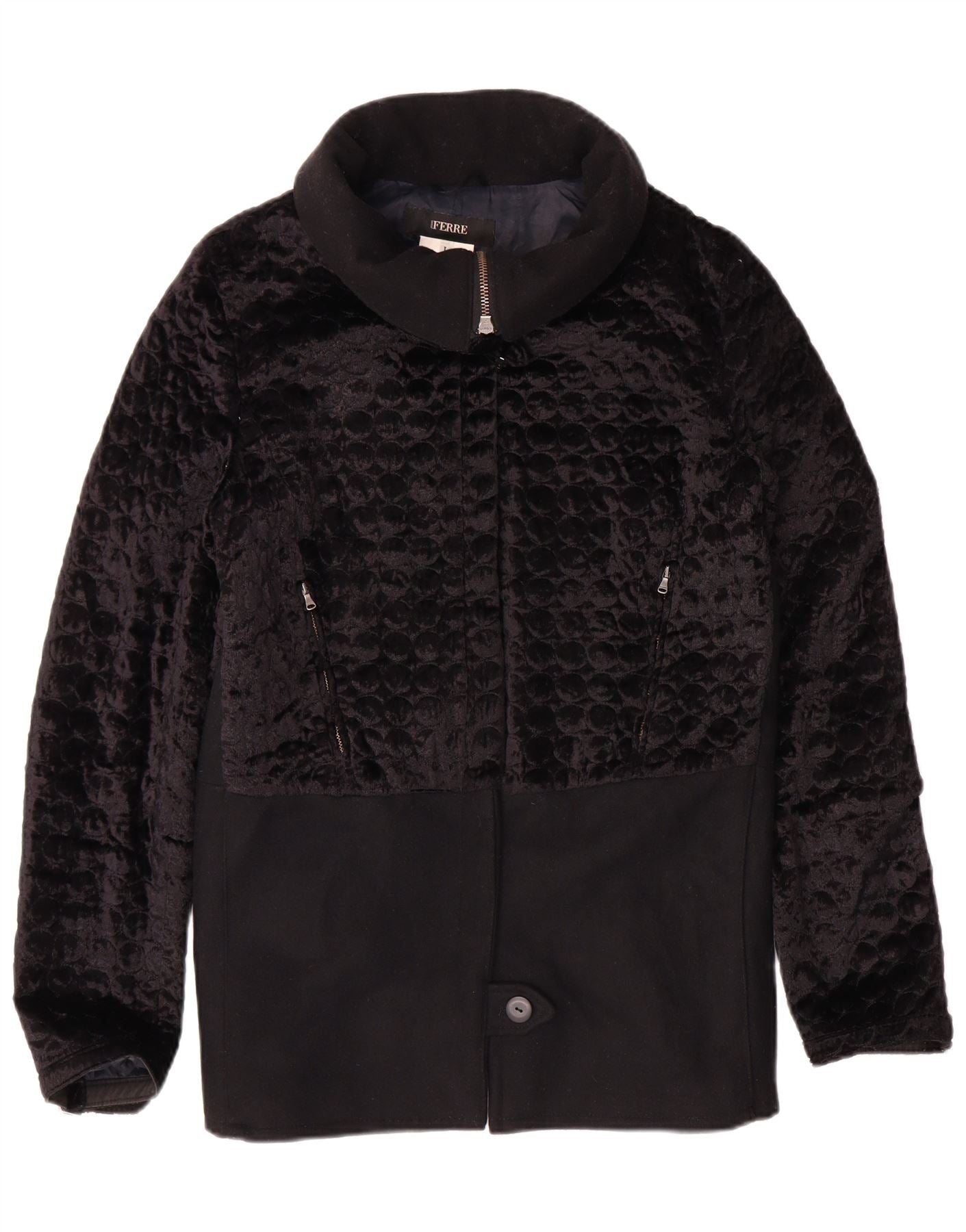 FERRE Veste en velours pour femme UK 14 Large Black Wool Classic