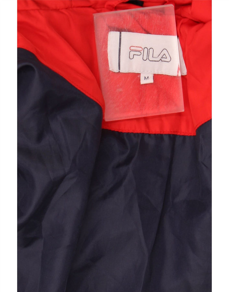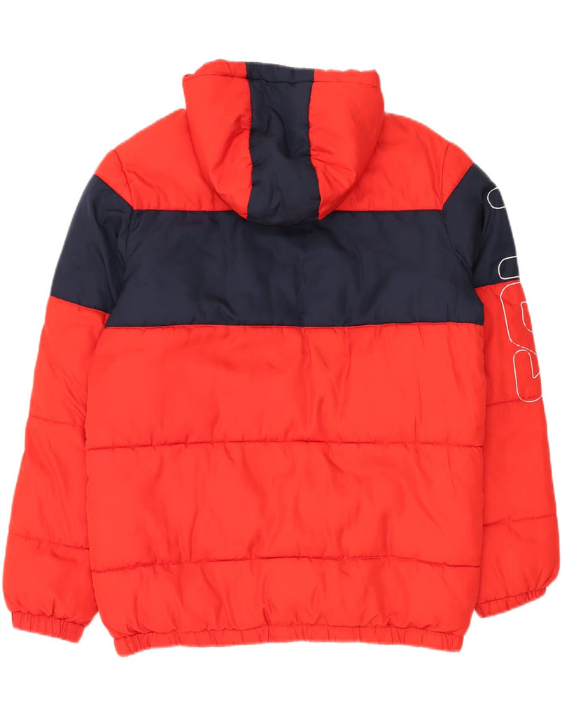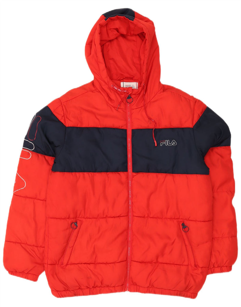 FILA Veste matelassée à capuche graphique pour hommes UK 38 Rouge moyen Colourblock