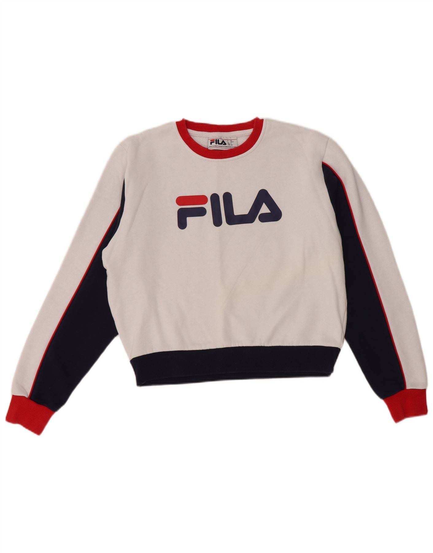 FILA Sweat-shirt court surdimensionné pour femme UK 10 Petit colorblock blanc