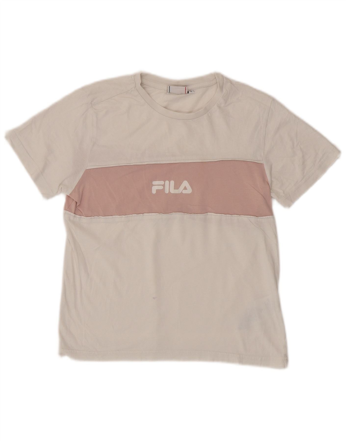 FILA T-shirt graphique pour femme UK 10 Petit coton color block blanc
