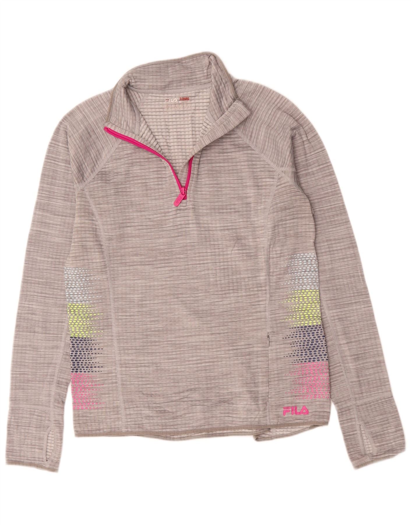 Fila Haut de survêtement à col zippé pour femme UK 14 Gris moyen moucheté