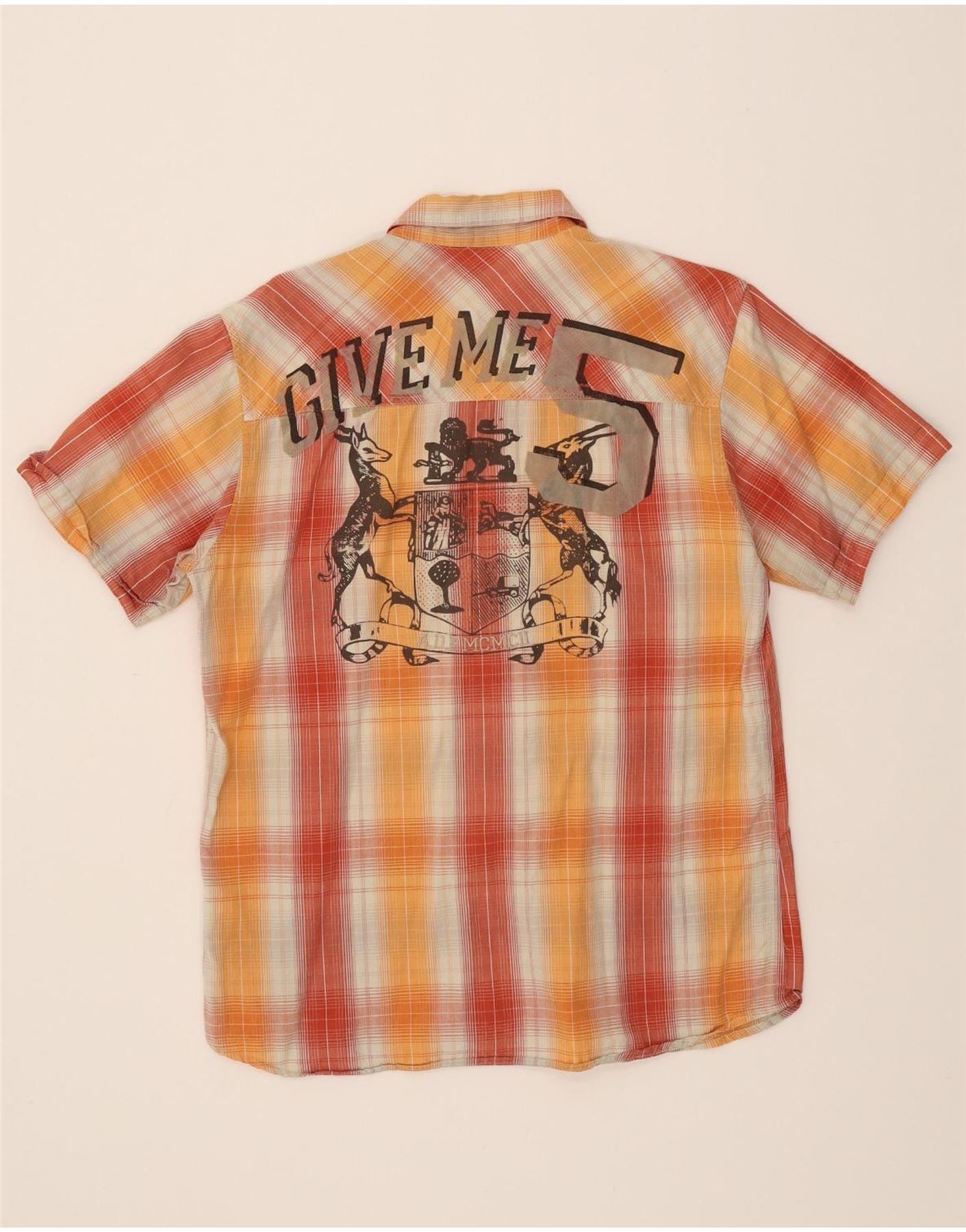 FISHBONE Mens Graphic Short Sleeve Shirt Medium Orange Check Cotton