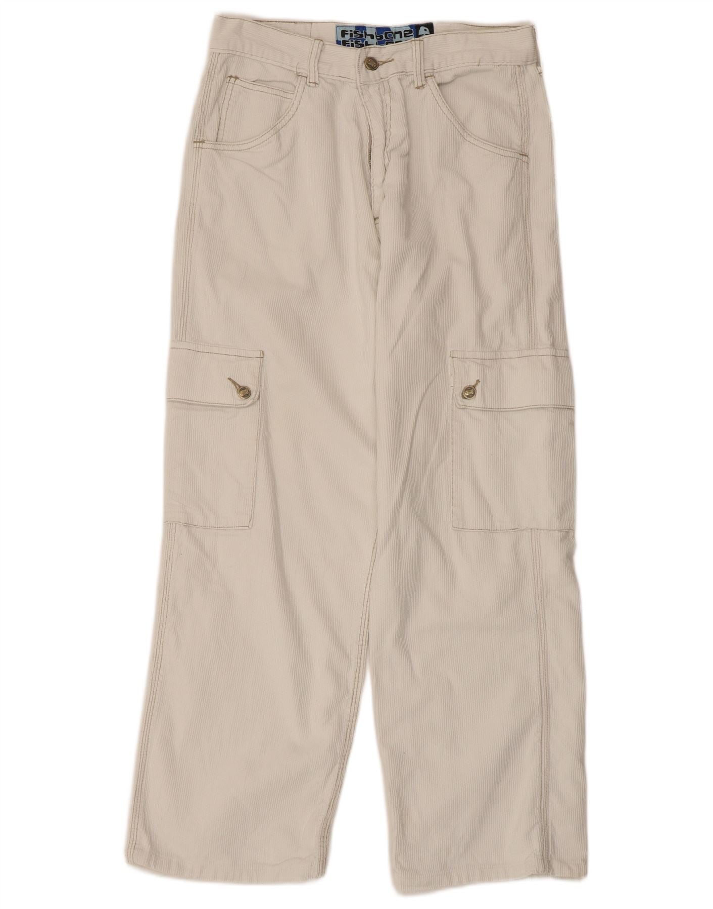 FISHBONE Mens Straight Cargo Corduroy Trousers Medium W30 L28 White Cotton