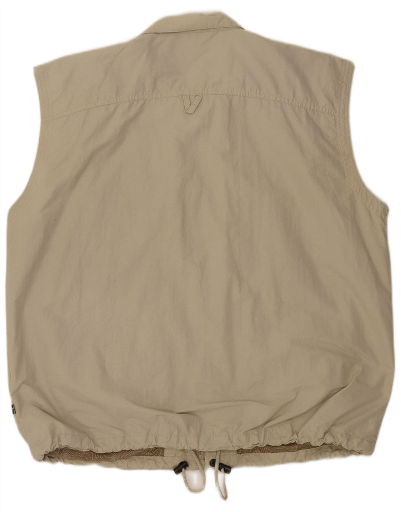 - AI Description: This Fjall Raven mens waistcoat is crafted from a lightweight woven fabric in a versatile beige hue. It features a classic collared neckline and a sleeveless design. The front boasts a five-button closure with tonal buttons. Practical pockets add functionality. Its regular fit ensures comfortable wear. An adjustable back strap allows for a tailored silhouette. This classic style is both practical and smart.