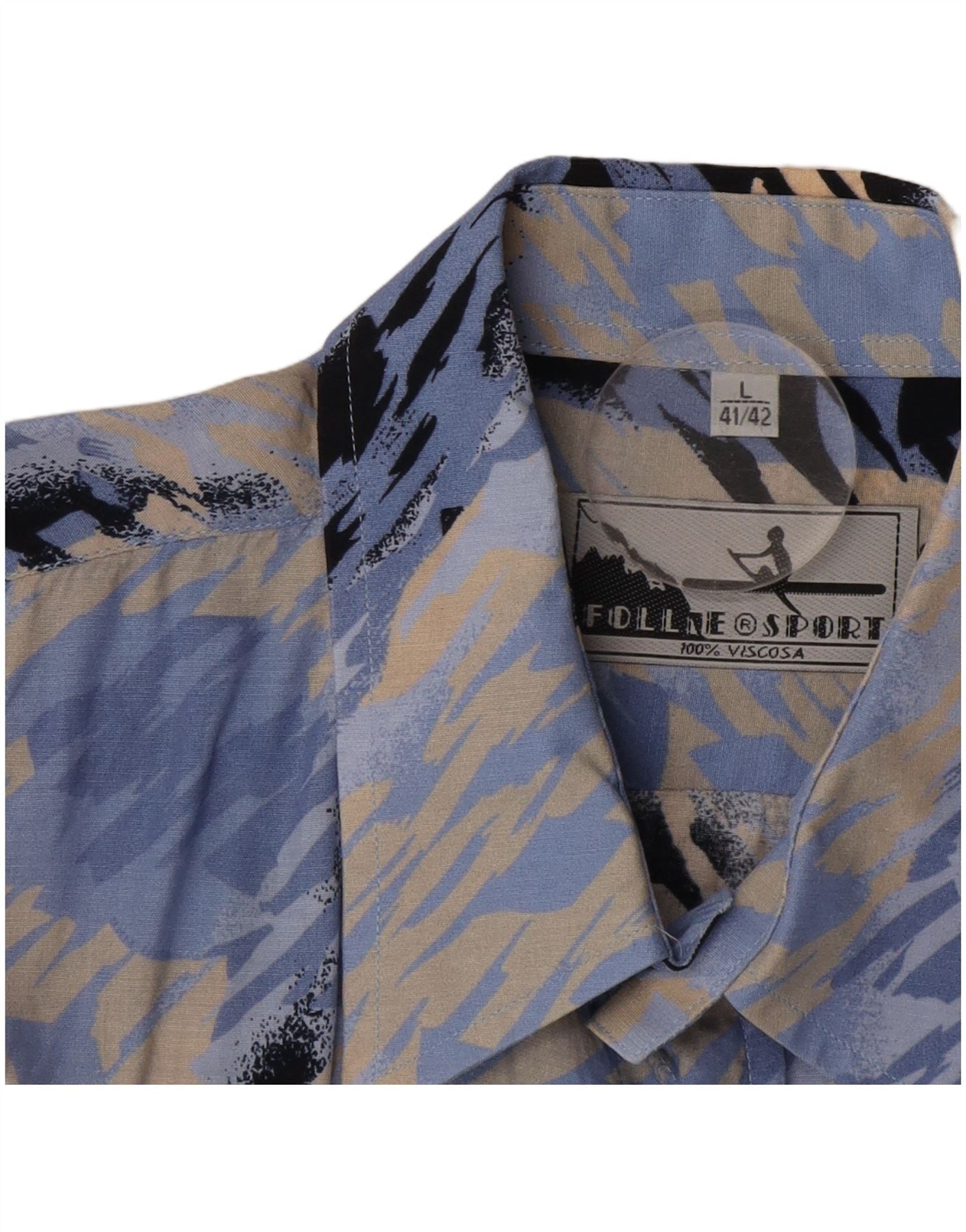 FOLLIE Chemise à manches courtes pour homme à motif abstrait Taille 41/42 Grand Bleu