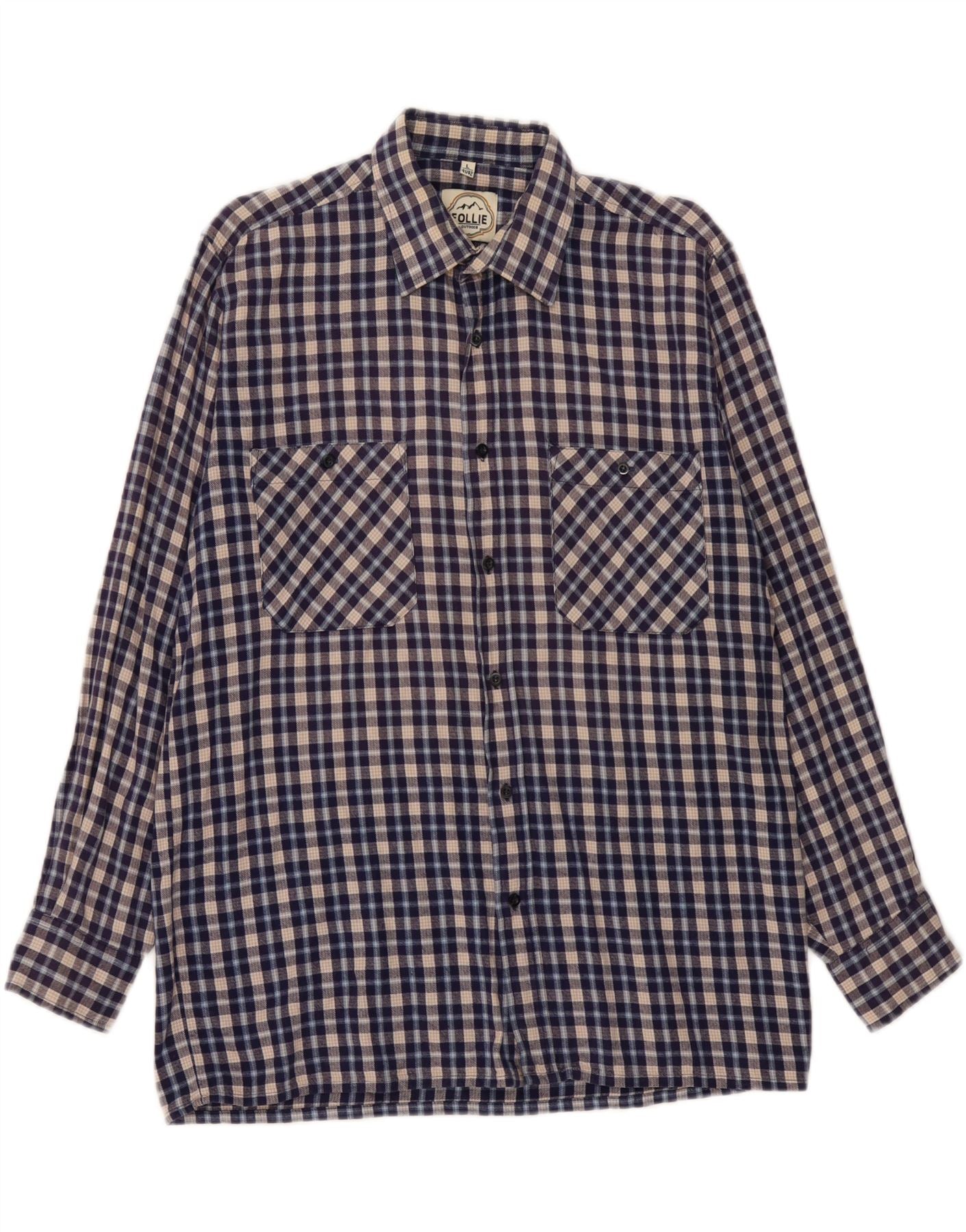 FOLLIE Chemise en flanelle pour homme Taille 41/42 Grand carreaux bleus
