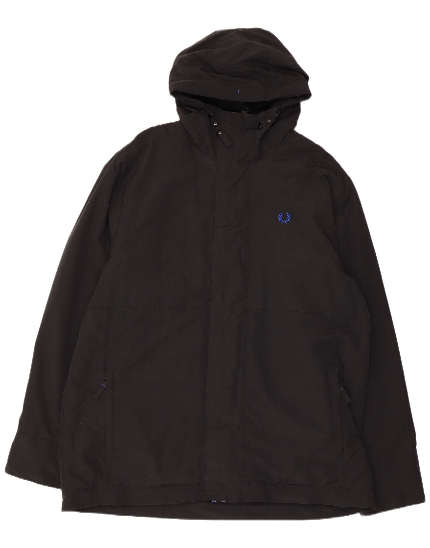 FRED PERRY Veste coupe-vent à capuche pour homme UK 42 XL Noir Polyester