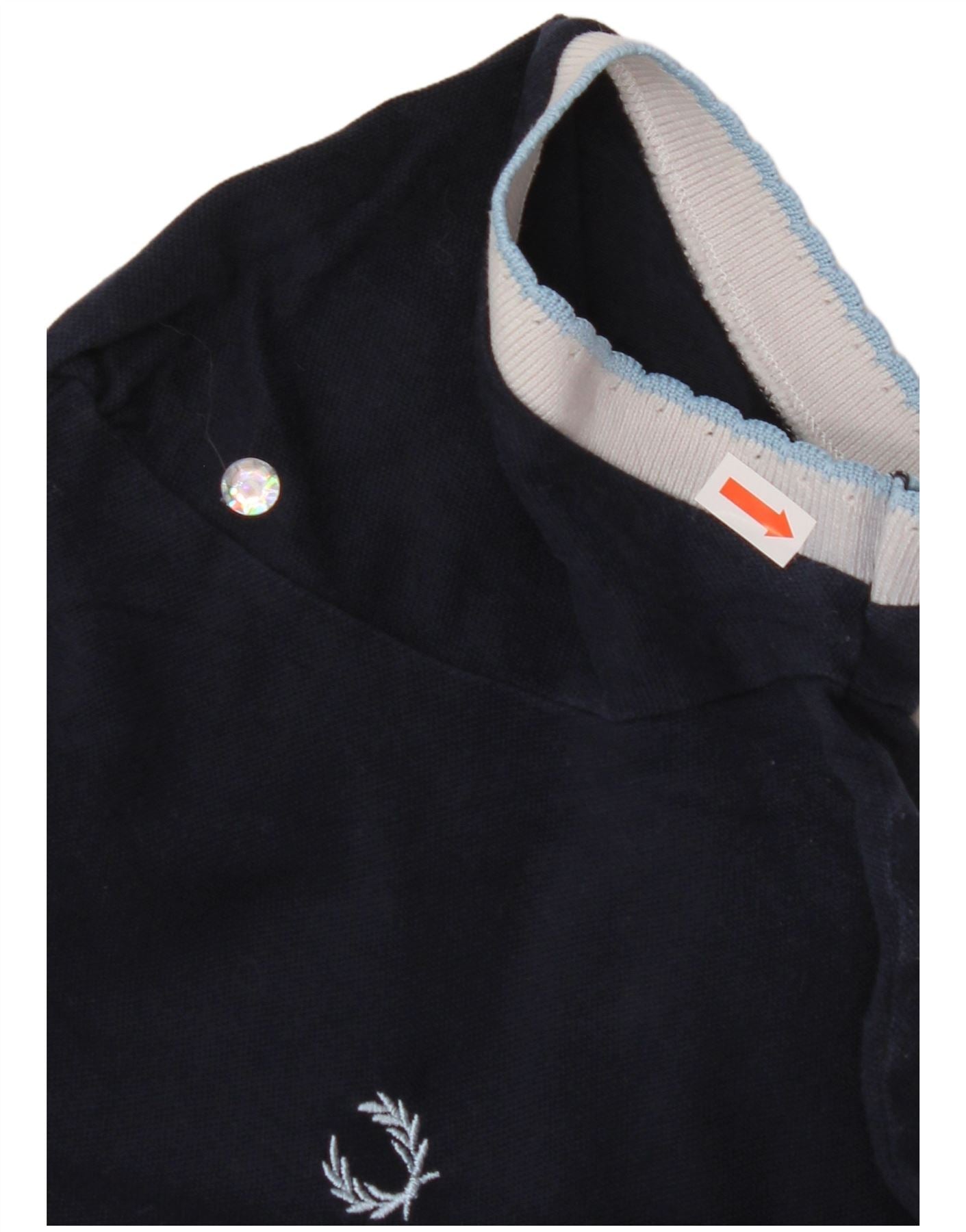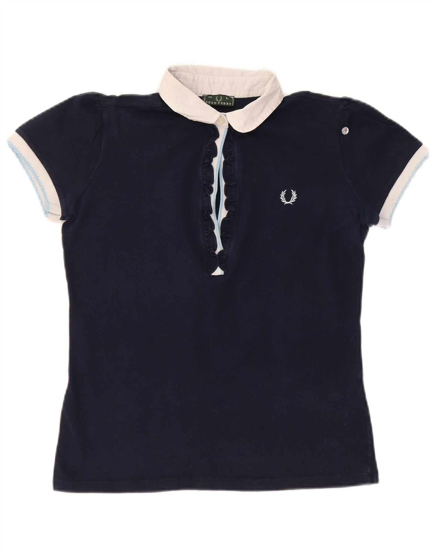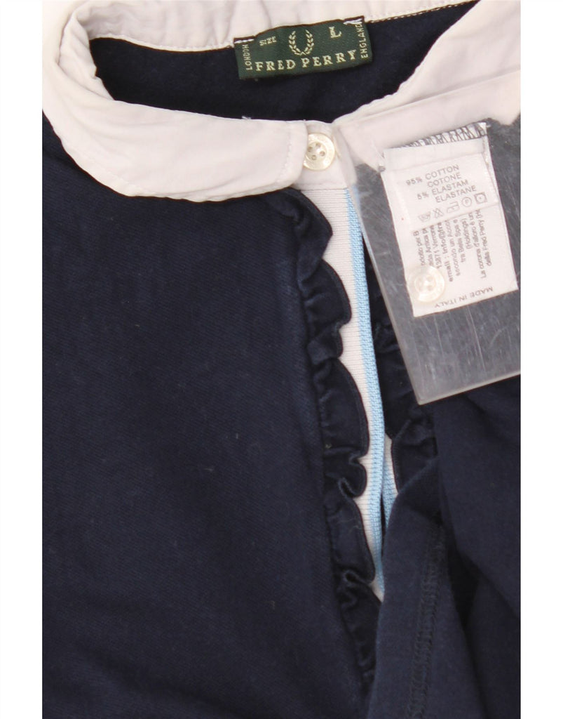 FRED PERRY Polo court pour femme UK 14 Grand coton colorblock bleu marine