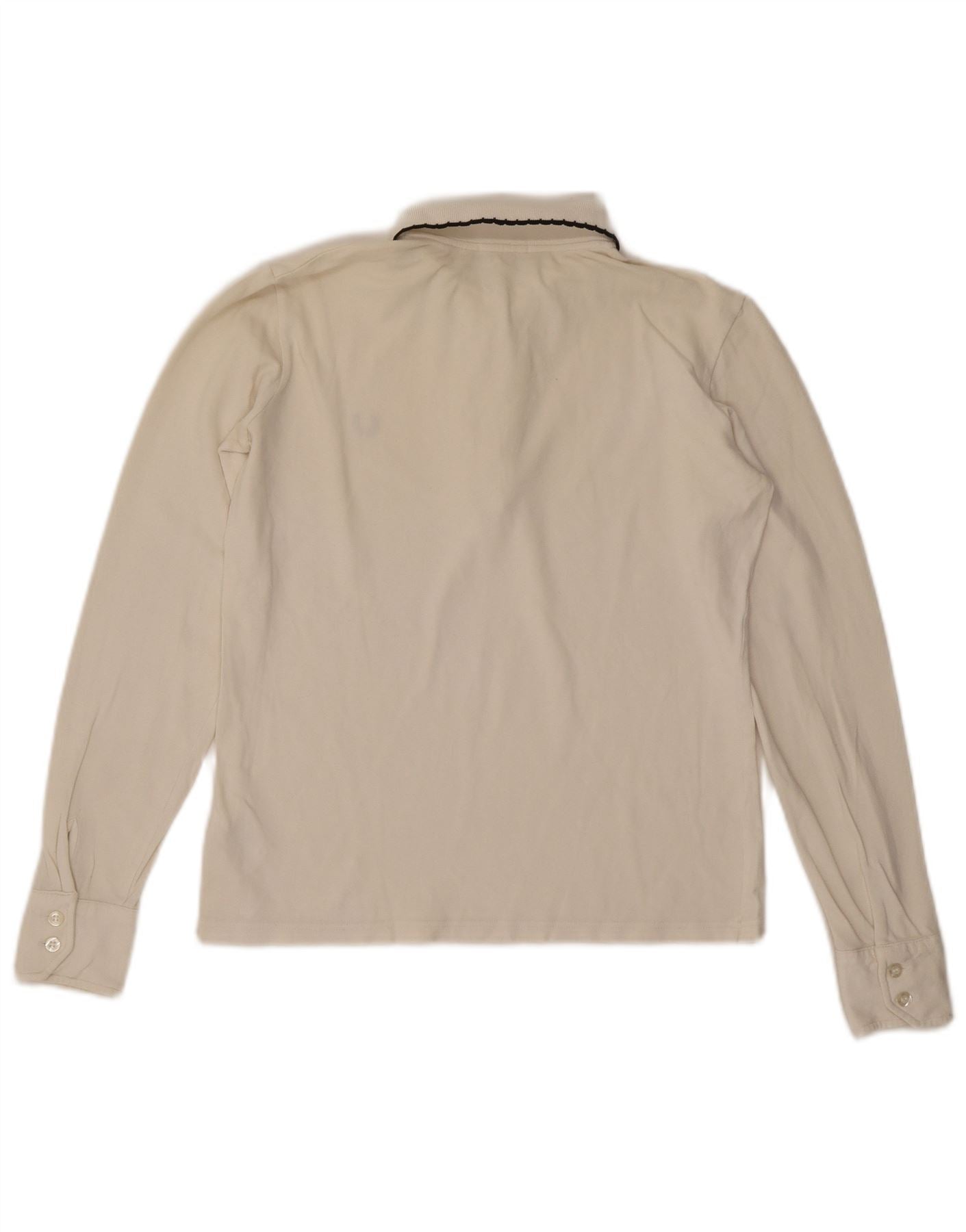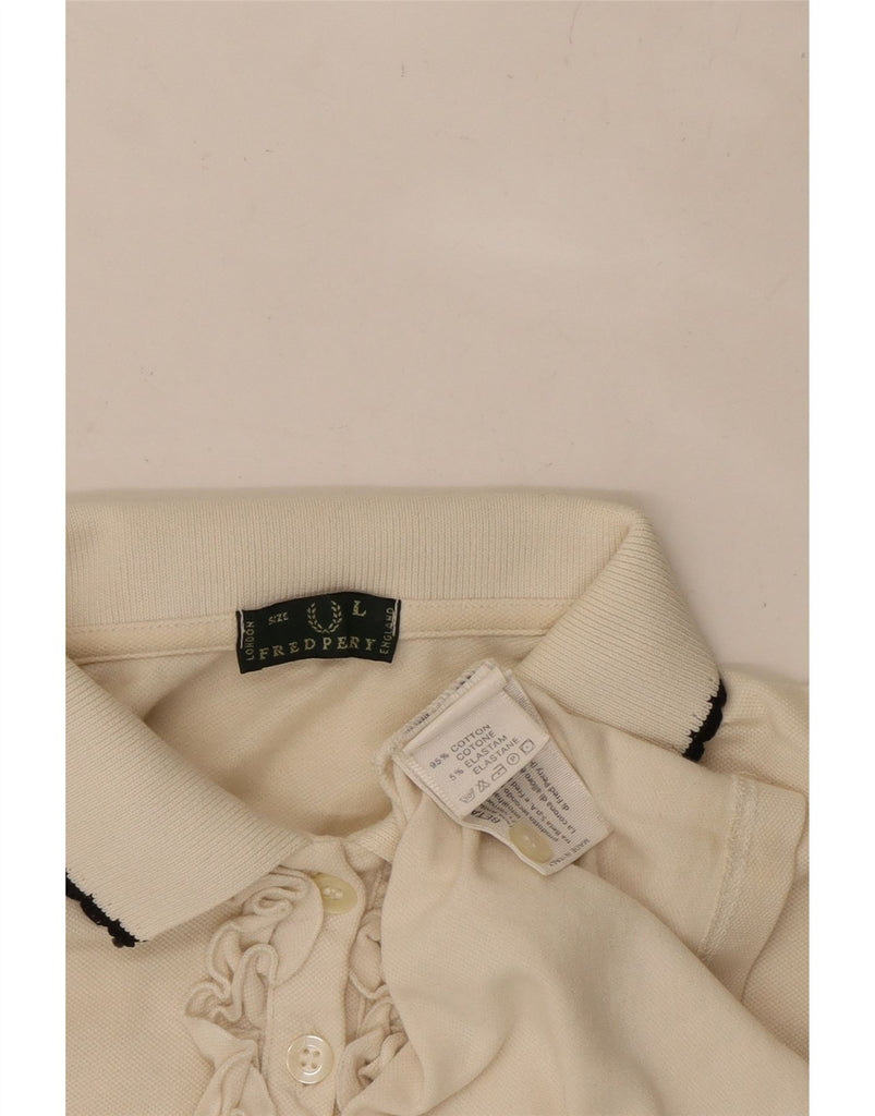 FRED PERRY Polo à manches longues à volants pour femme UK 14 Large Blanc