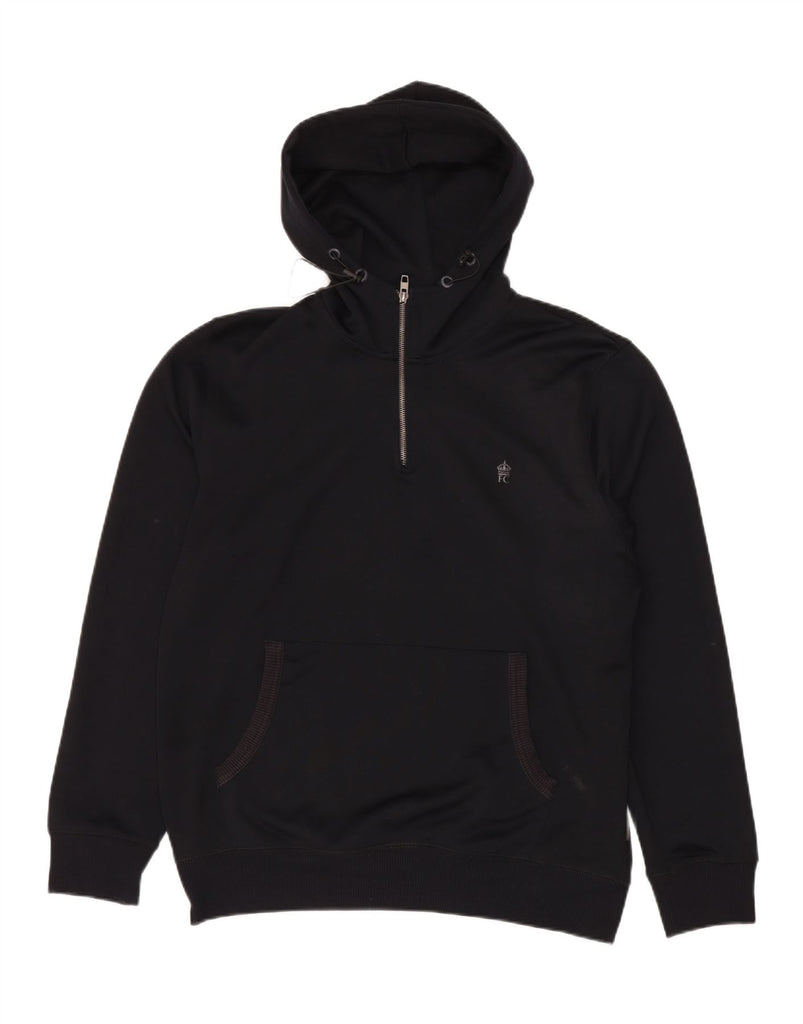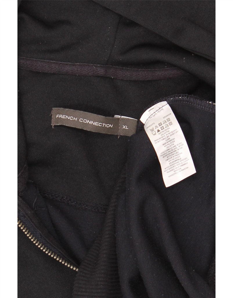 FRENCH CONNECTION Mens Zip Neck Hoodie Jumper XL Black Polyester
