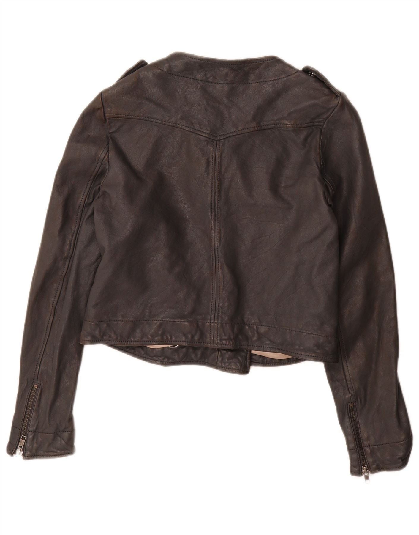 French Connection Veste militaire courte pour femme UK 10 Petit cuir noir