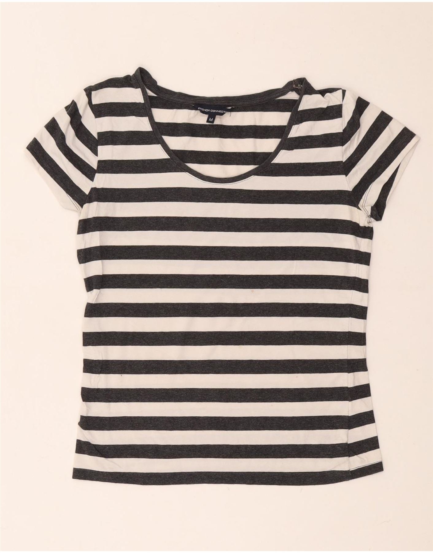 FRENCH CONNECTION T-Shirt Femme Top UK 12 Gris Moyen Rayé Coton