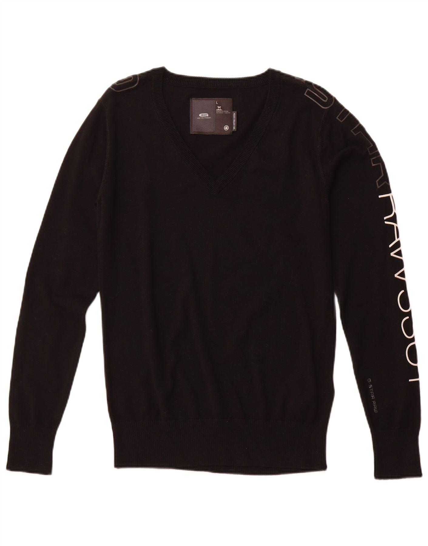 G-STAR Pull graphique à col en V pour hommes, grand coton noir