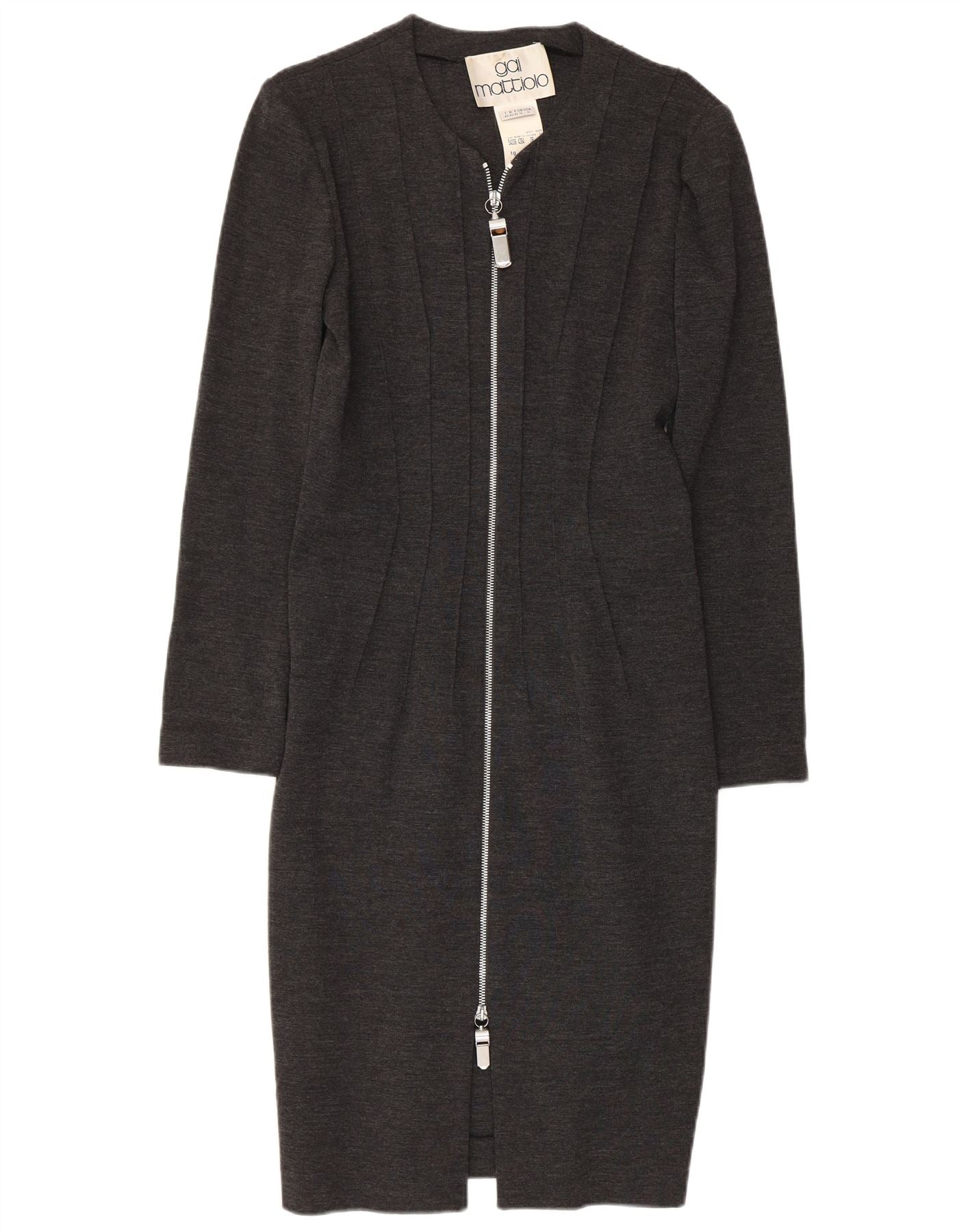 GAI MATTIOLO Robe moulante à manches longues pour femme UK 16 Grande laine vierge grise