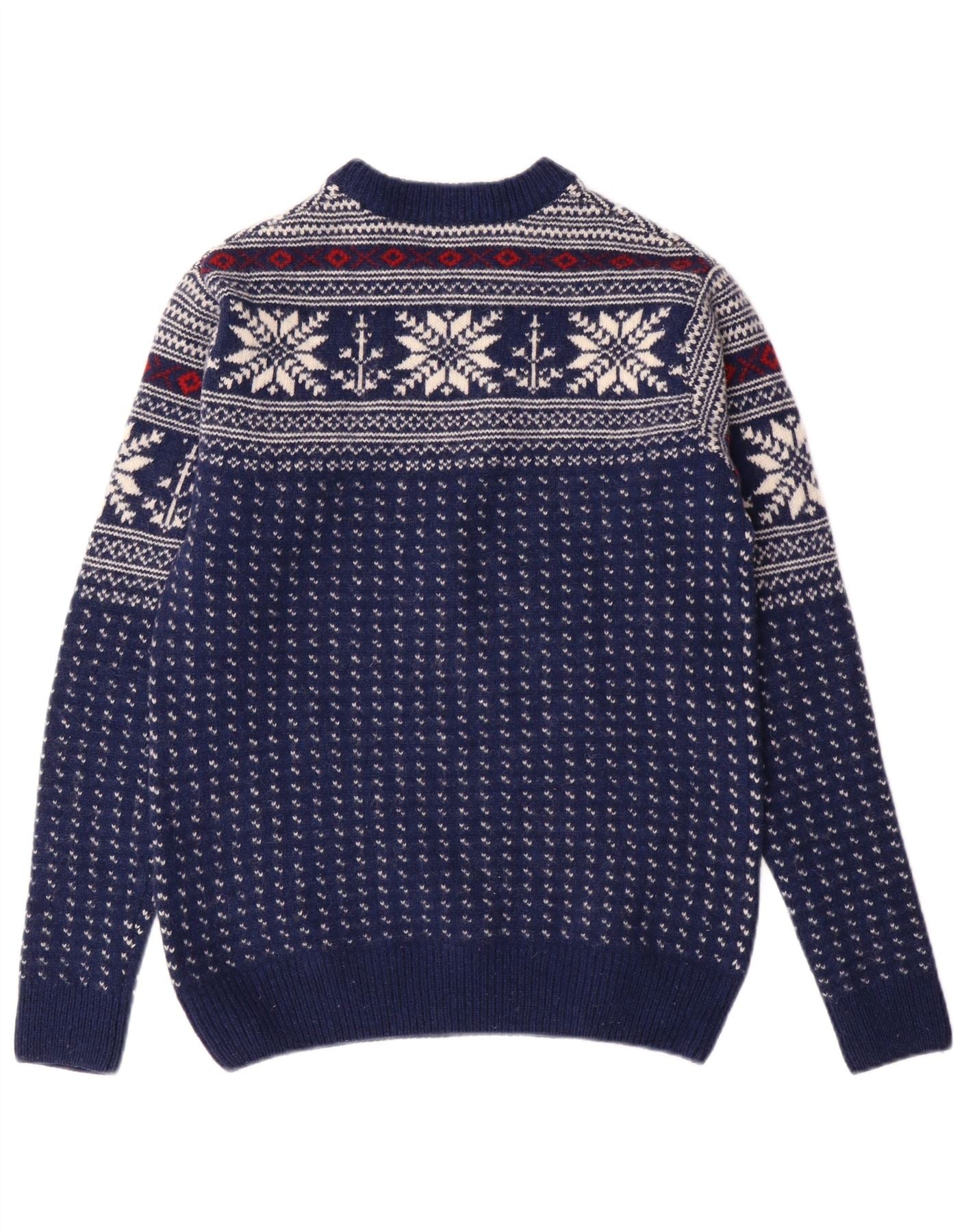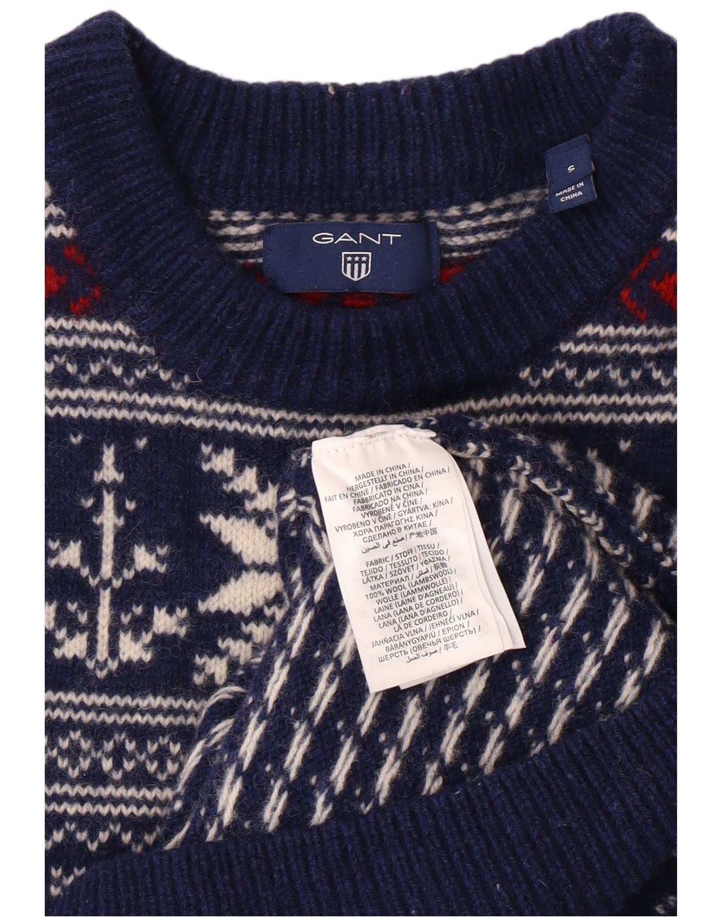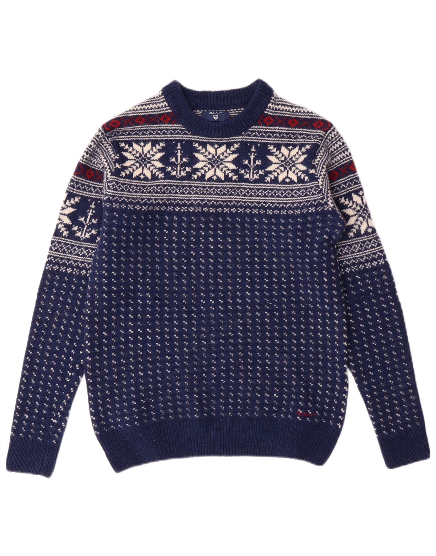 GANT Pull ras du cou pour homme en laine Fair Isle bleu marine Small