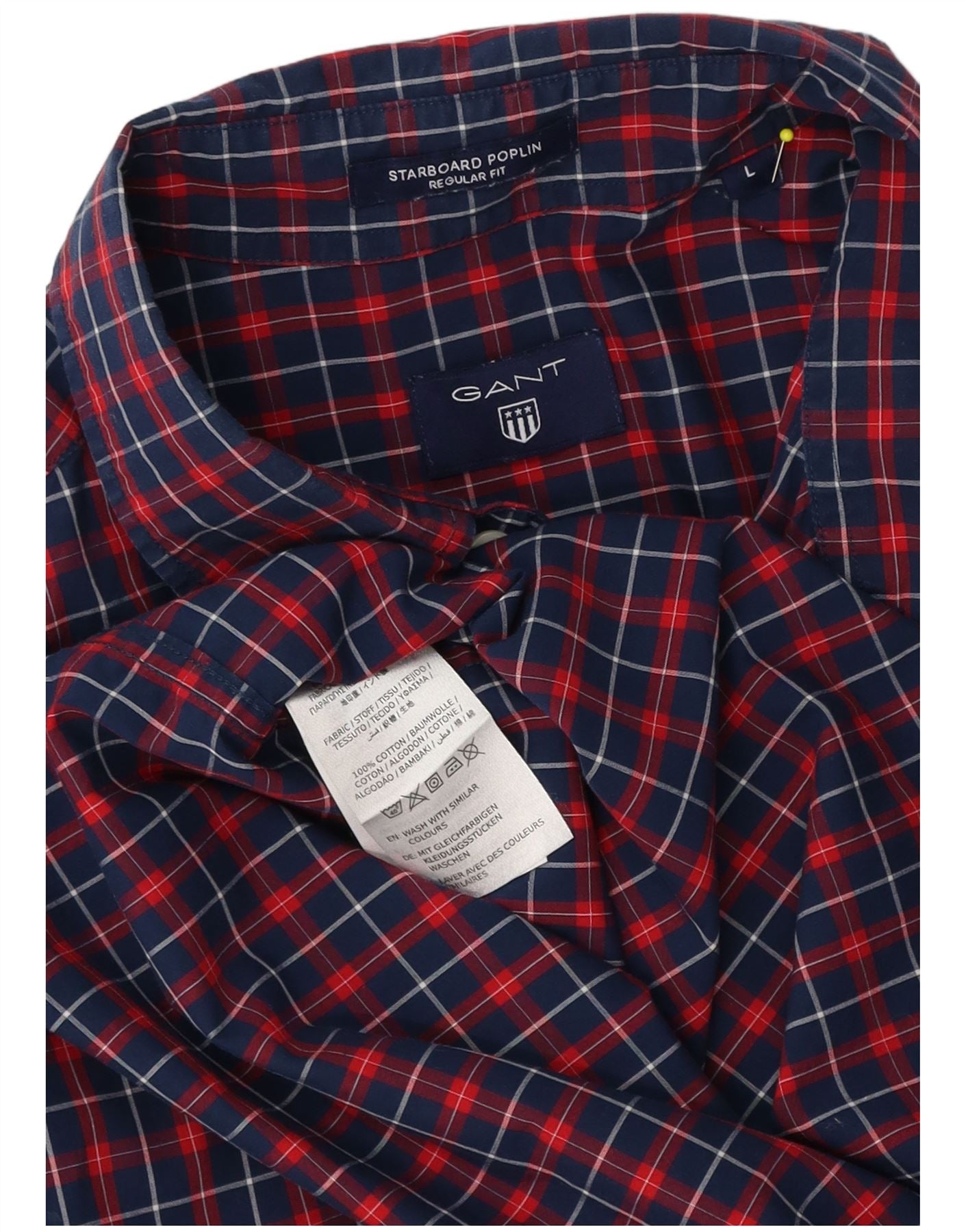 - Description de l'IA : Cette chemise pour homme Gant est confectionnée à partir de tissu tissé 100 % coton, avec un motif à carreaux bleu marine et rouge vibrant. Il présente une encolure à col classique et un devant entièrement boutonné pour un look élégant. Les manches courtes et la coupe régulière assurent un port confortable. Une poche poitrine unique ajoute un détail pratique à ce design intemporel.