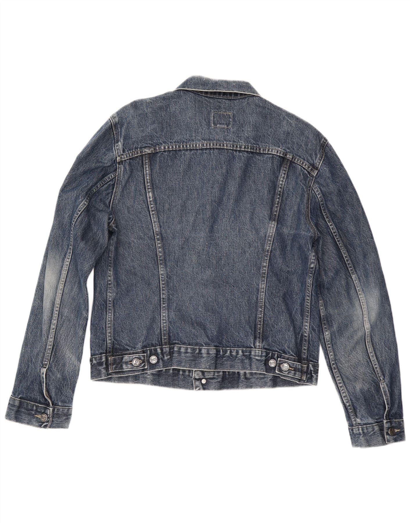 - Description de l'IA : Cette veste en jean Gas pour femme est confectionnée à partir de denim bleu classique, offrant un attrait intemporel. Il présente une encolure structurée et une fermeture entièrement boutonnée sur le devant. Les manches longues mènent à des poignets boutonnés, mettant en valeur la silhouette traditionnelle. Les deux poches poitrine avec rabats boutonnés ajoutent des détails pratiques. La coupe régulière assure un port confortable, ce qui en fait un incontournable polyvalent de la garde-robe.
