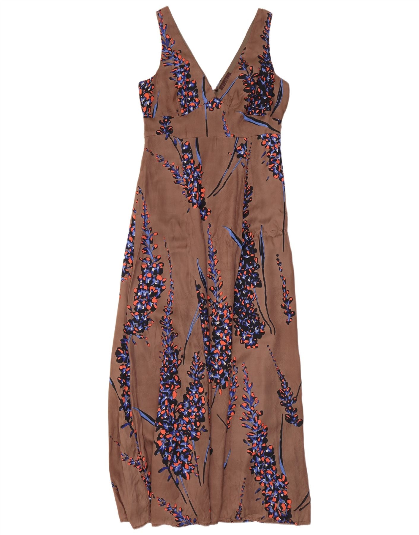 GREAT PLAINS Robe longue sans manches pour femme UK 12 Rayonne florale marron moyen
