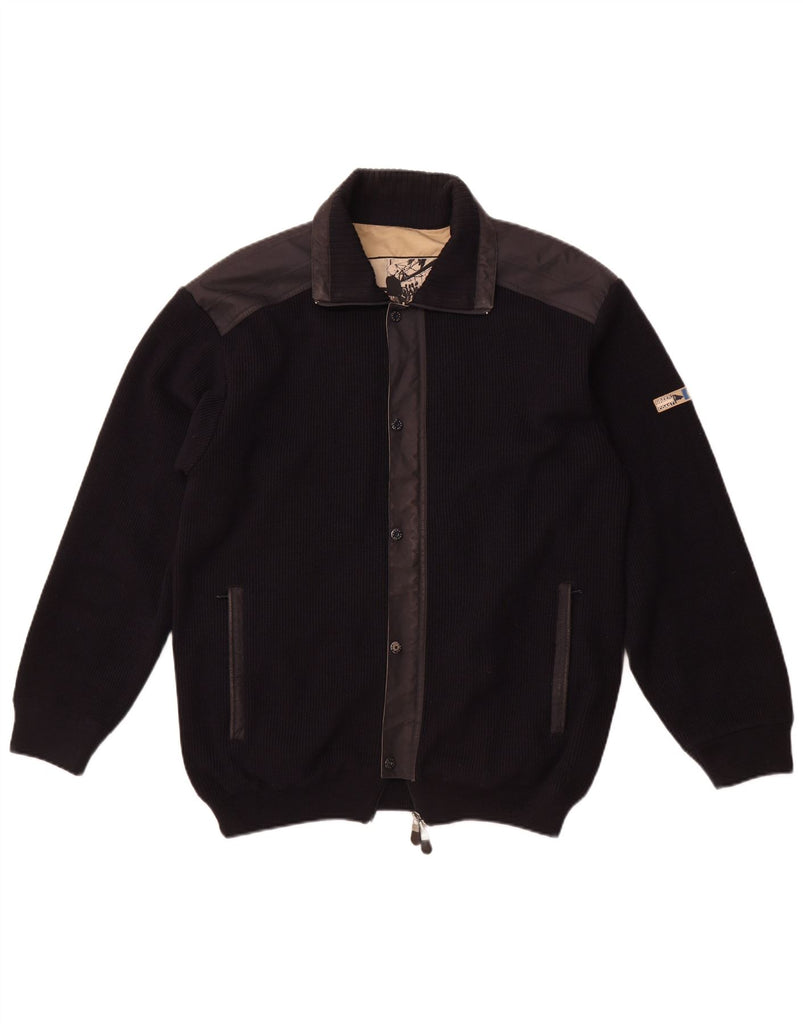 GREEN COAST Pull Cardigan Homme IT 58 2XL Bleu Marine Laine Mérinos
