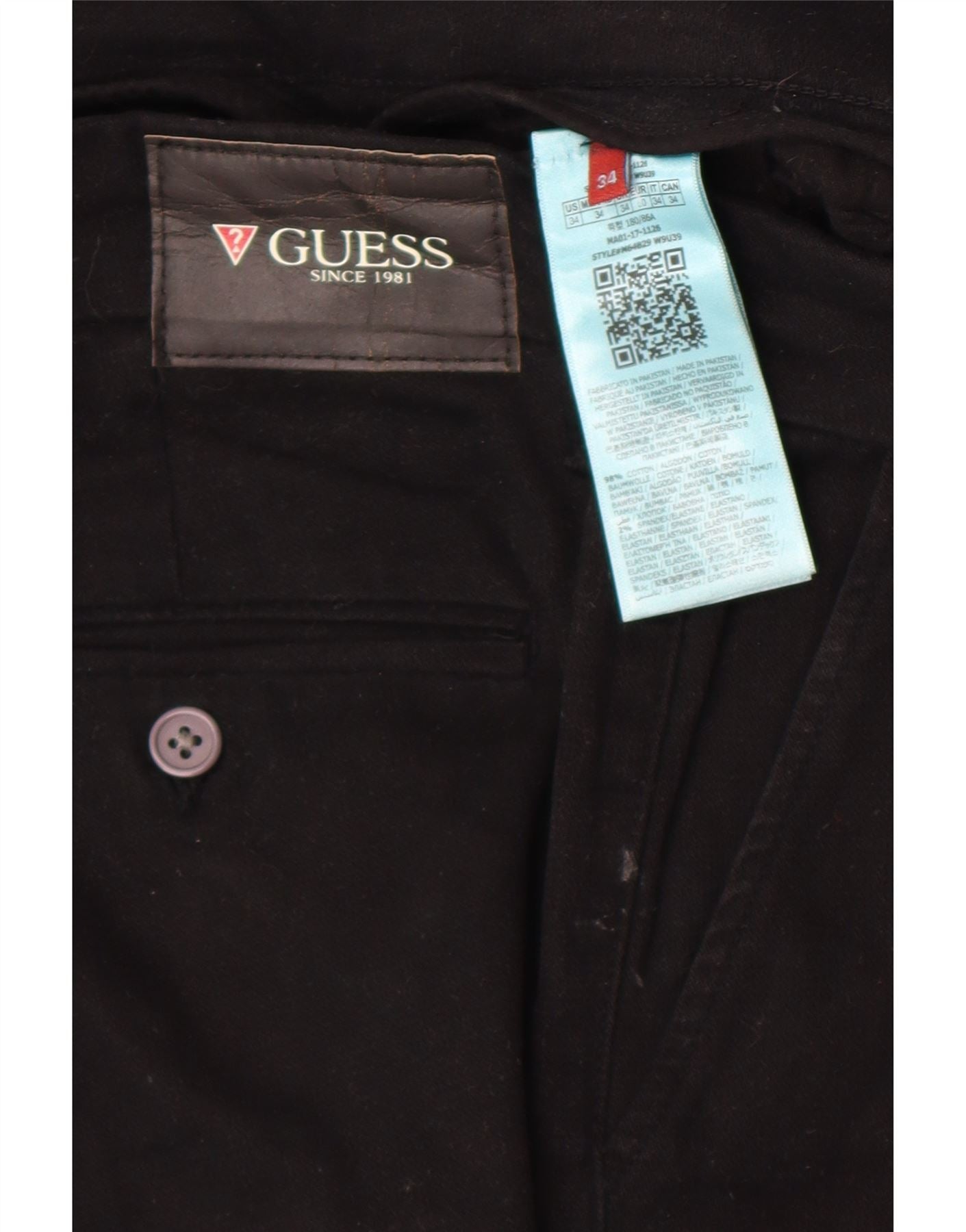 Guess Pantalon Chino Slim Homme W34 L32 Noir Coton