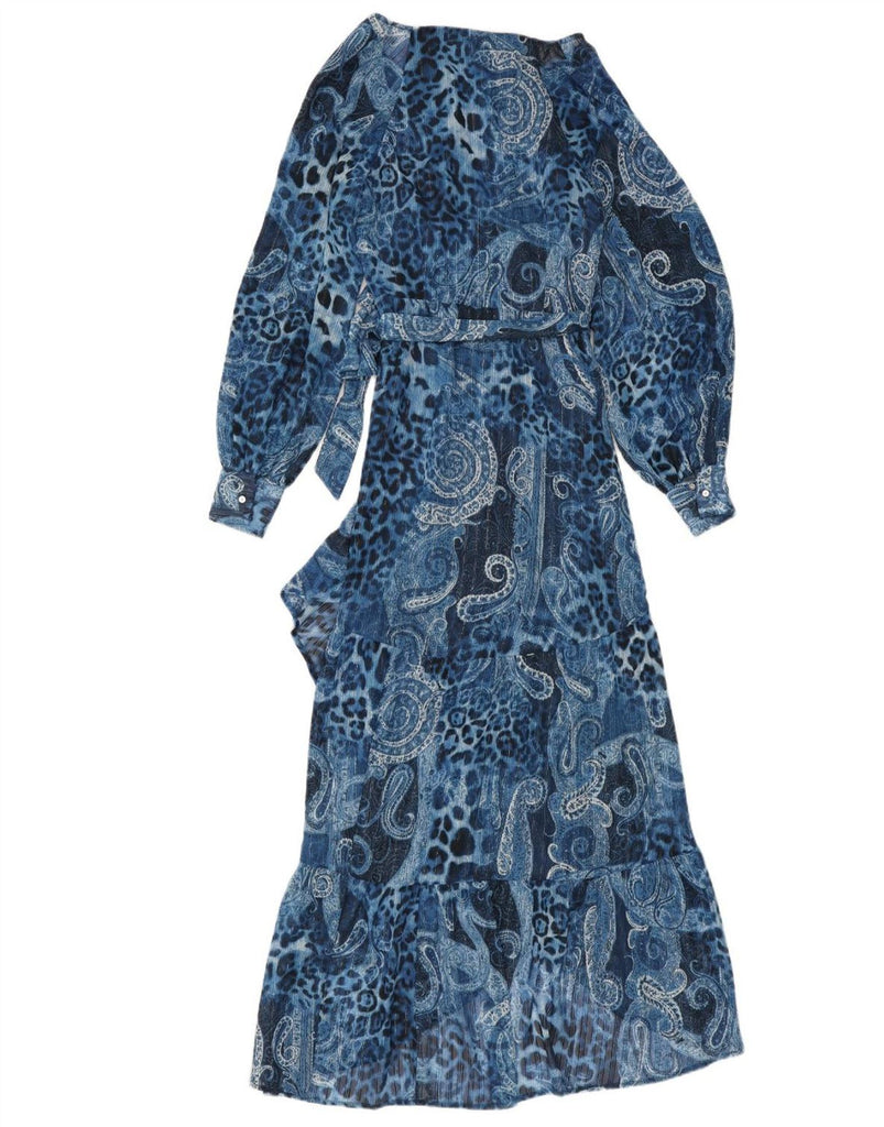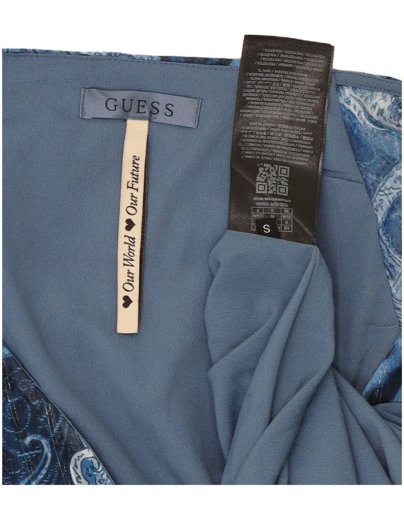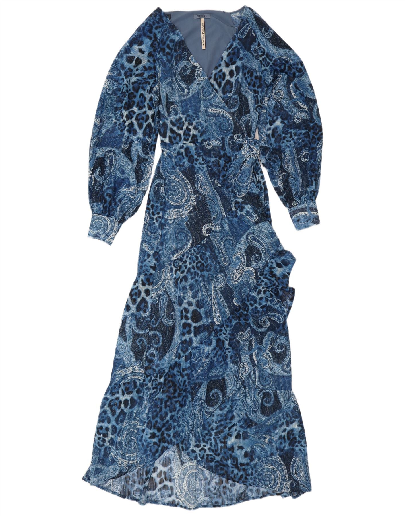 GUESS Robe portefeuille asymétrique pour femme UK 10 Petit Bleu Paisley Polyester