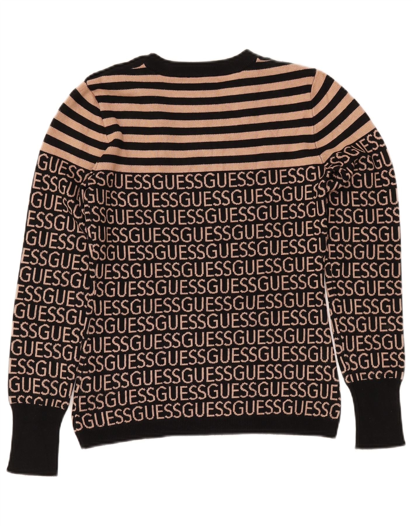 GUESS Pull graphique à col rond pour femme UK 10 Petit rayé noir