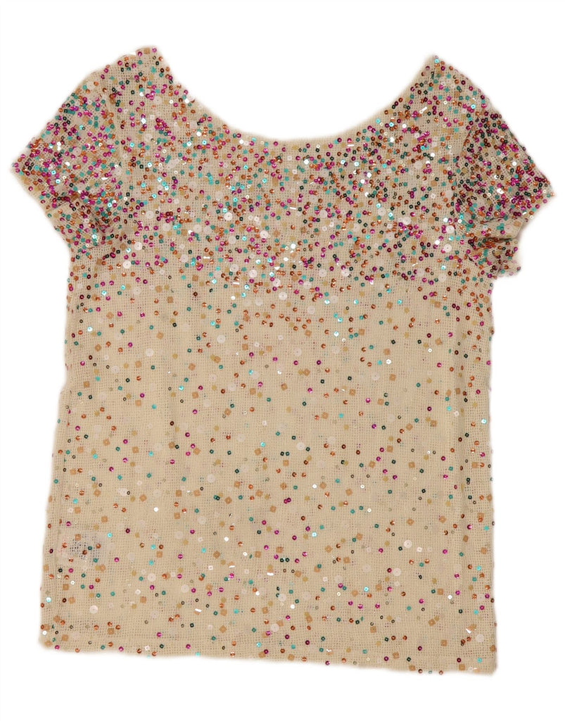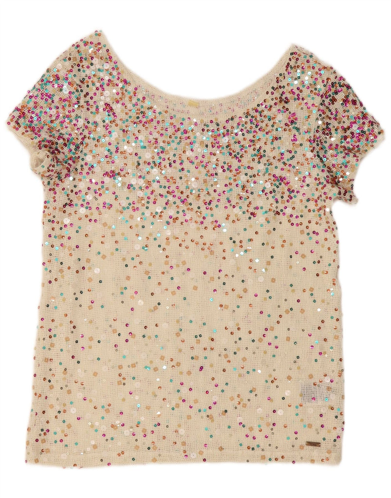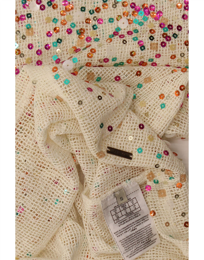 GUESS Chemisier au crochet à paillettes pour femme UK 10 Petit Blanc cassé Polyester