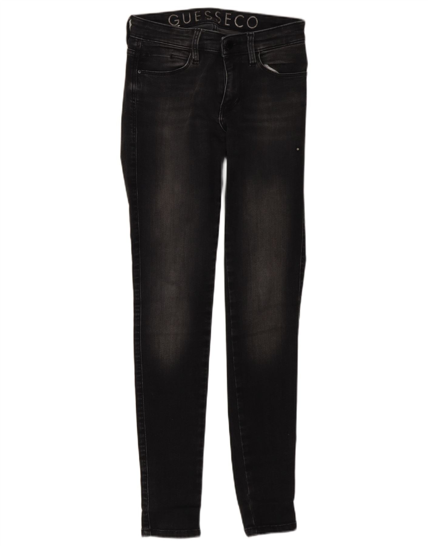 - Description de l'IA : Ce jean skinny Guess pour femme est confectionné en denim stretch noir, offrant un look élégant et moderne. Ils présentent une taille mi-haute et une fermeture boutonnée et zippée pour un ajustement sécurisé. La coupe extra slim épouse la jambe de la hanche à la cheville, créant une silhouette épurée. Le style classique à cinq poches ajoute de la praticité, complété par un subtil logo. Ce jean allie confort et style contemporain.
