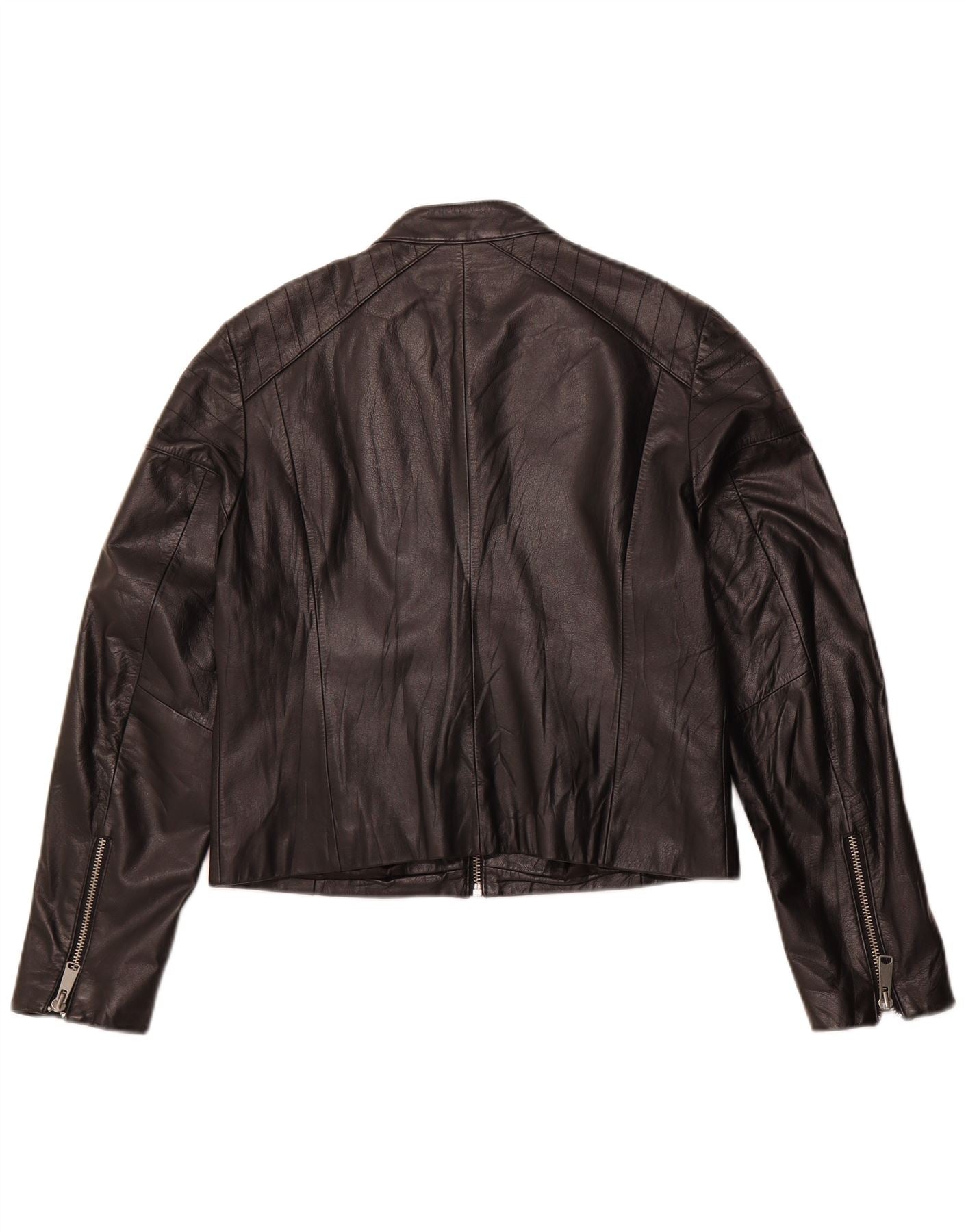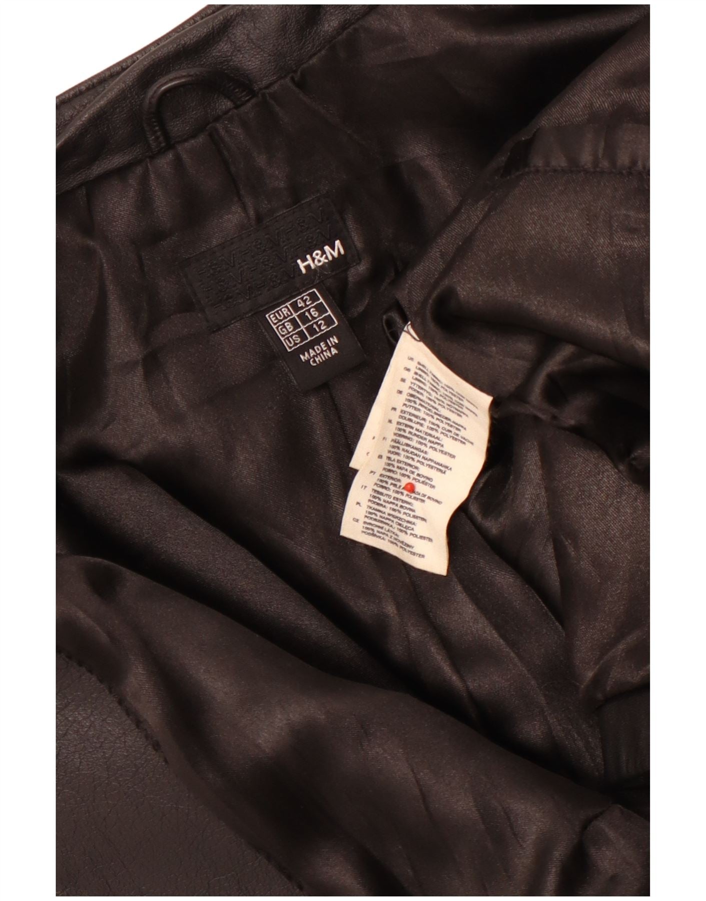 H&M Veste en cuir crop pour femme UK 16 Grand cuir noir