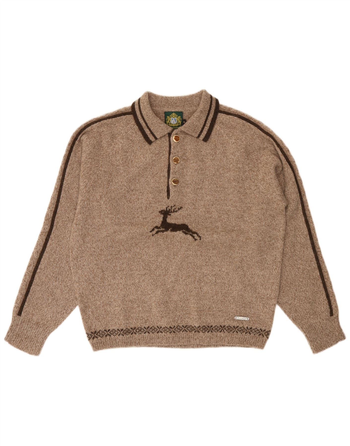 HAMMERSCHMID Pull graphique à col polo pour homme Marron moyen moucheté