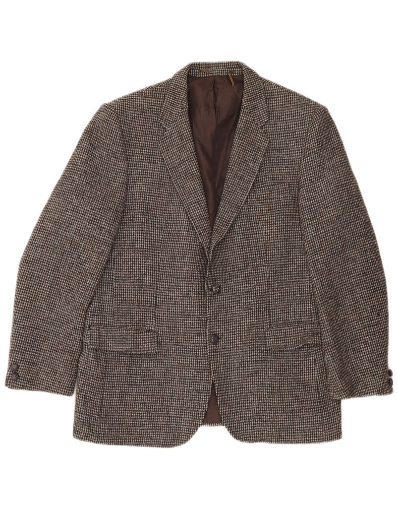 HARRIS TWEED Mens 2 Button Blazer Jacket UK 38 Medium Brown Check Wool