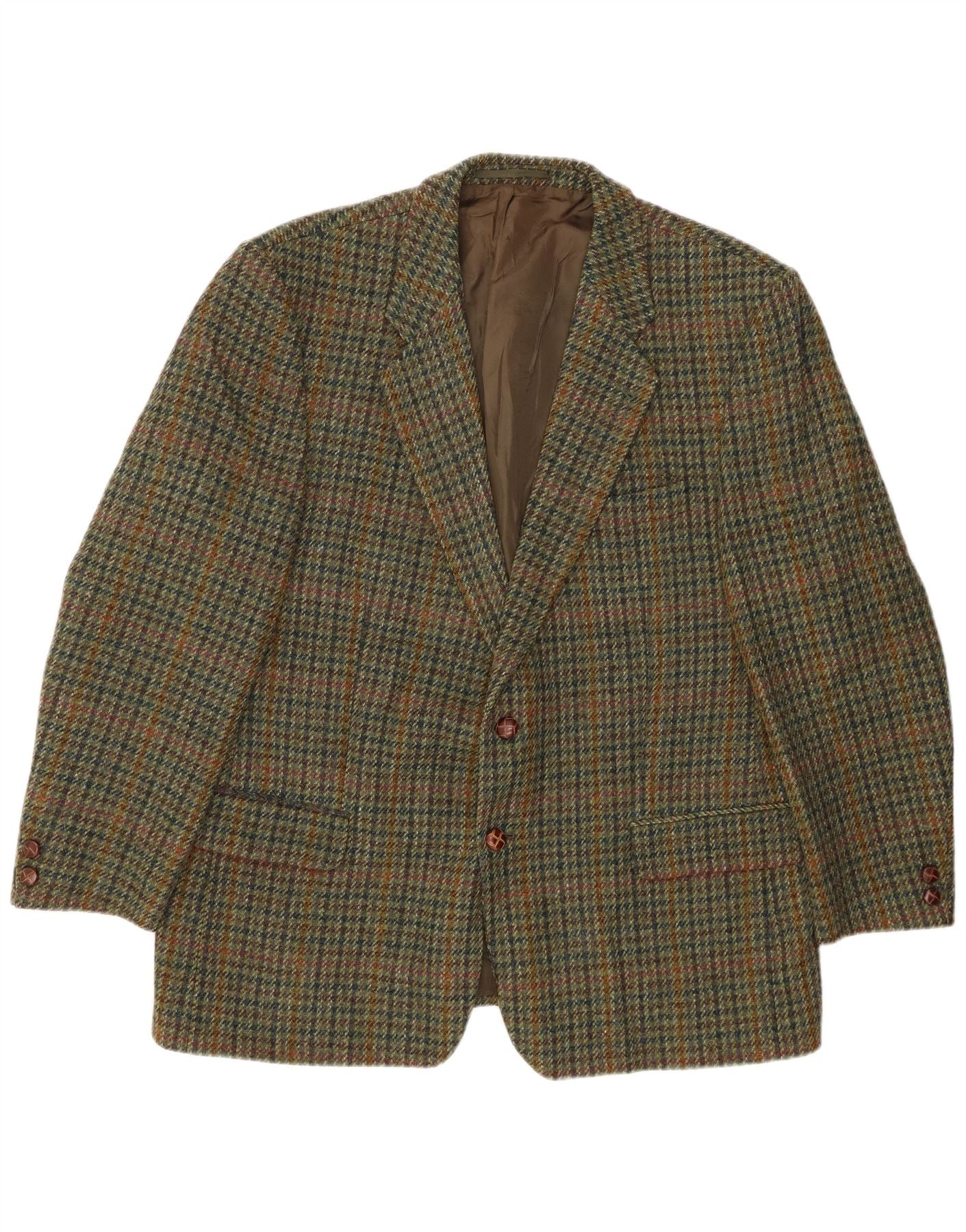 HARRIS TWEED Veste blazer à 2 boutons pour homme UK 40 Grand pied-de-poule kaki