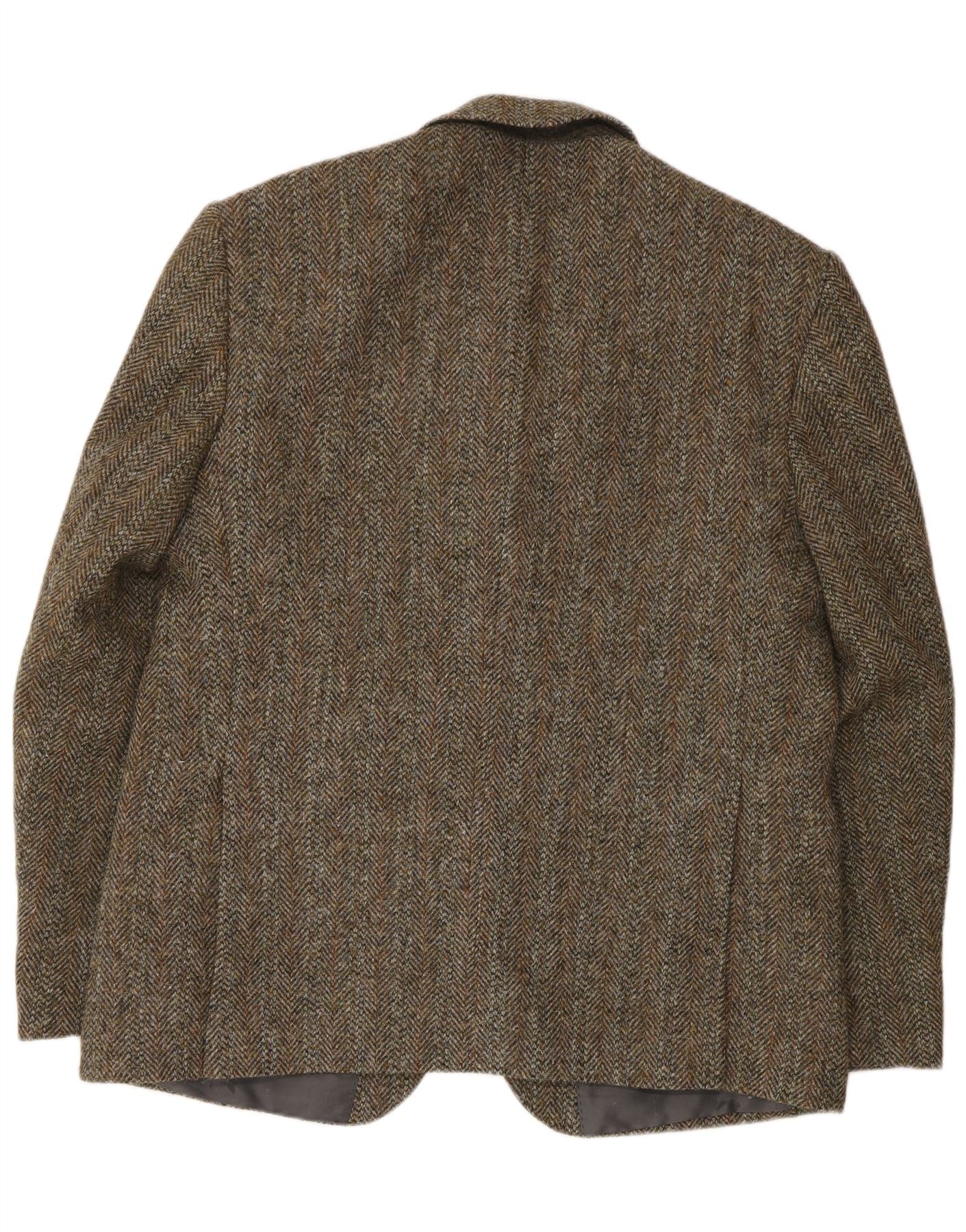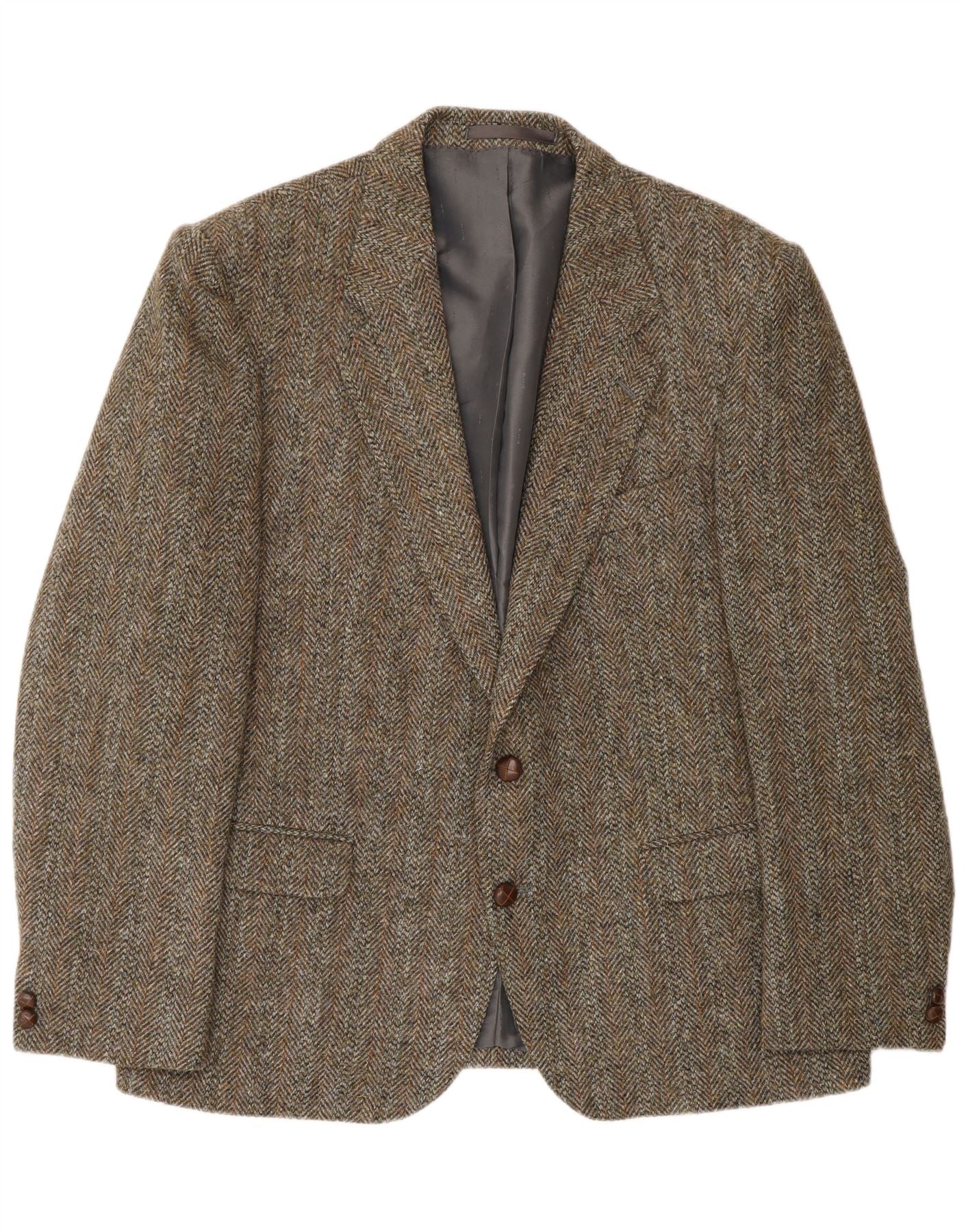 HARRIS TWEED Veste Blazer 2 Boutons pour Homme UK 46 3XL Laine à Chevrons Vert