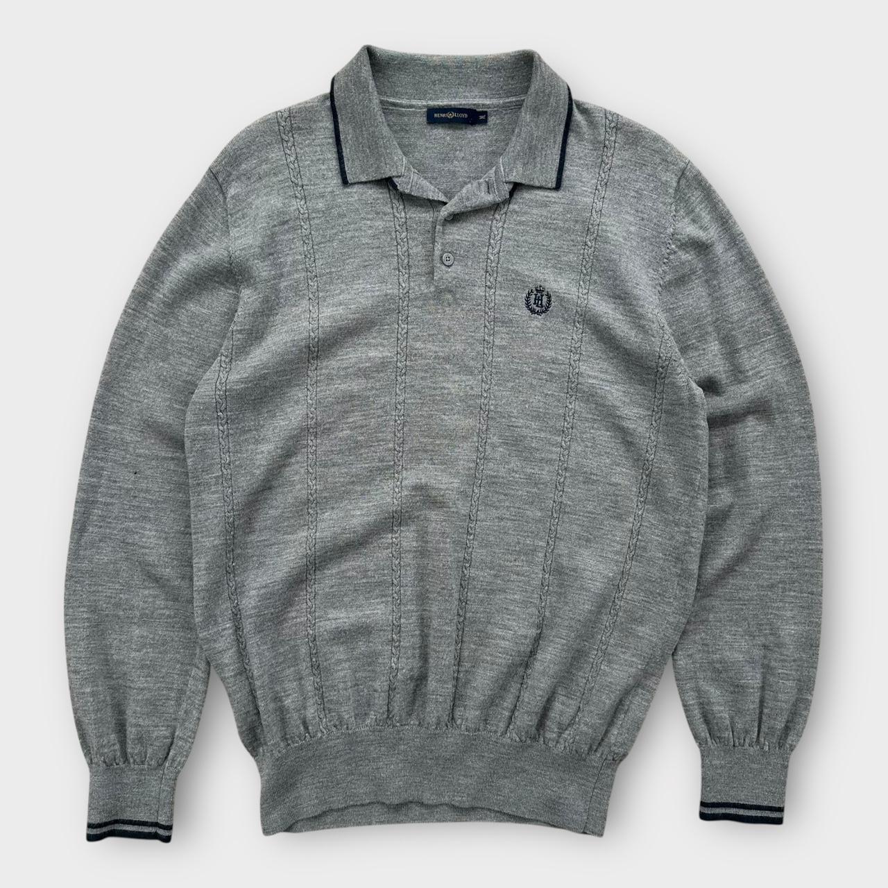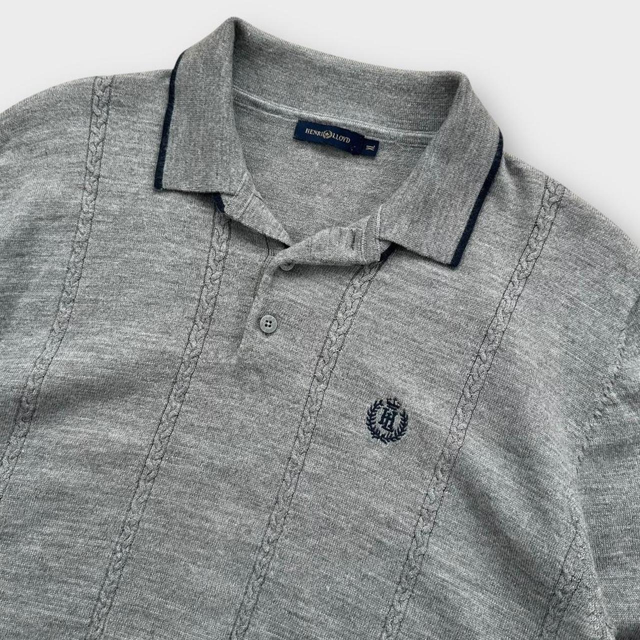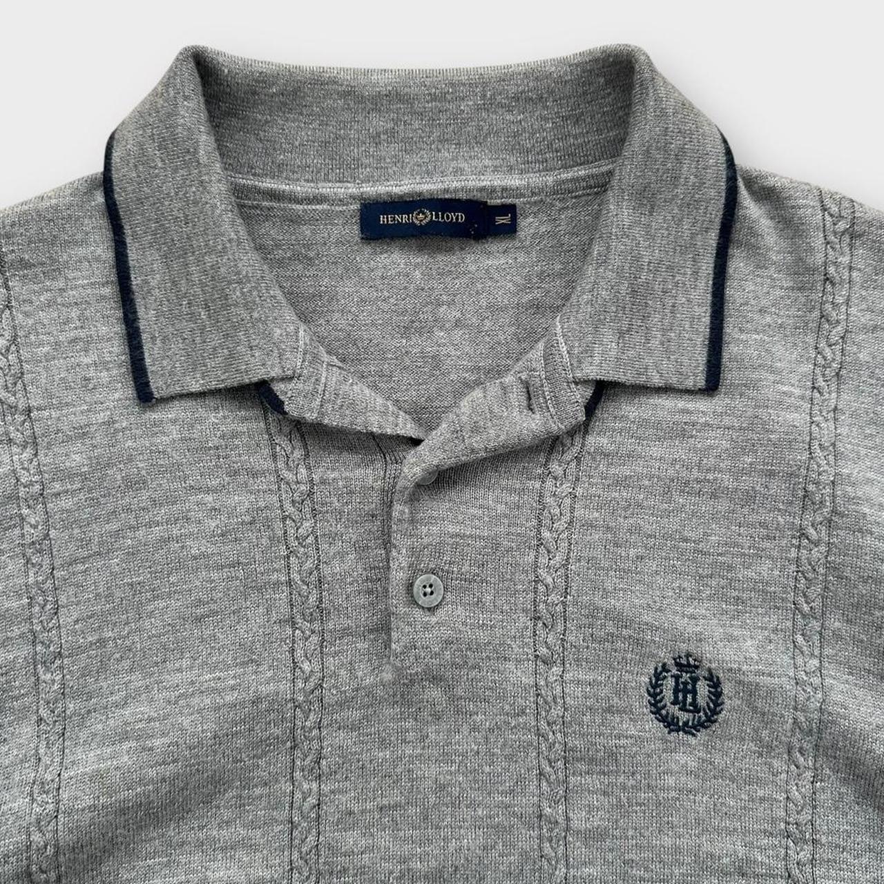 Pull en tricot à col boutonné Henri Lloyd vintage du début des années 2000 en gris avec logo brodé sur la poitrine