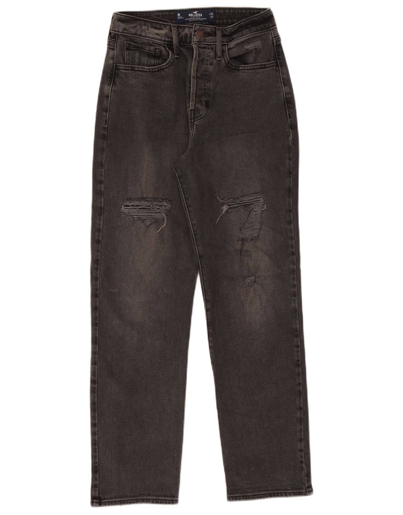 HOLLISTER Jean droit taille haute effet vieilli W25 L27 coton noir