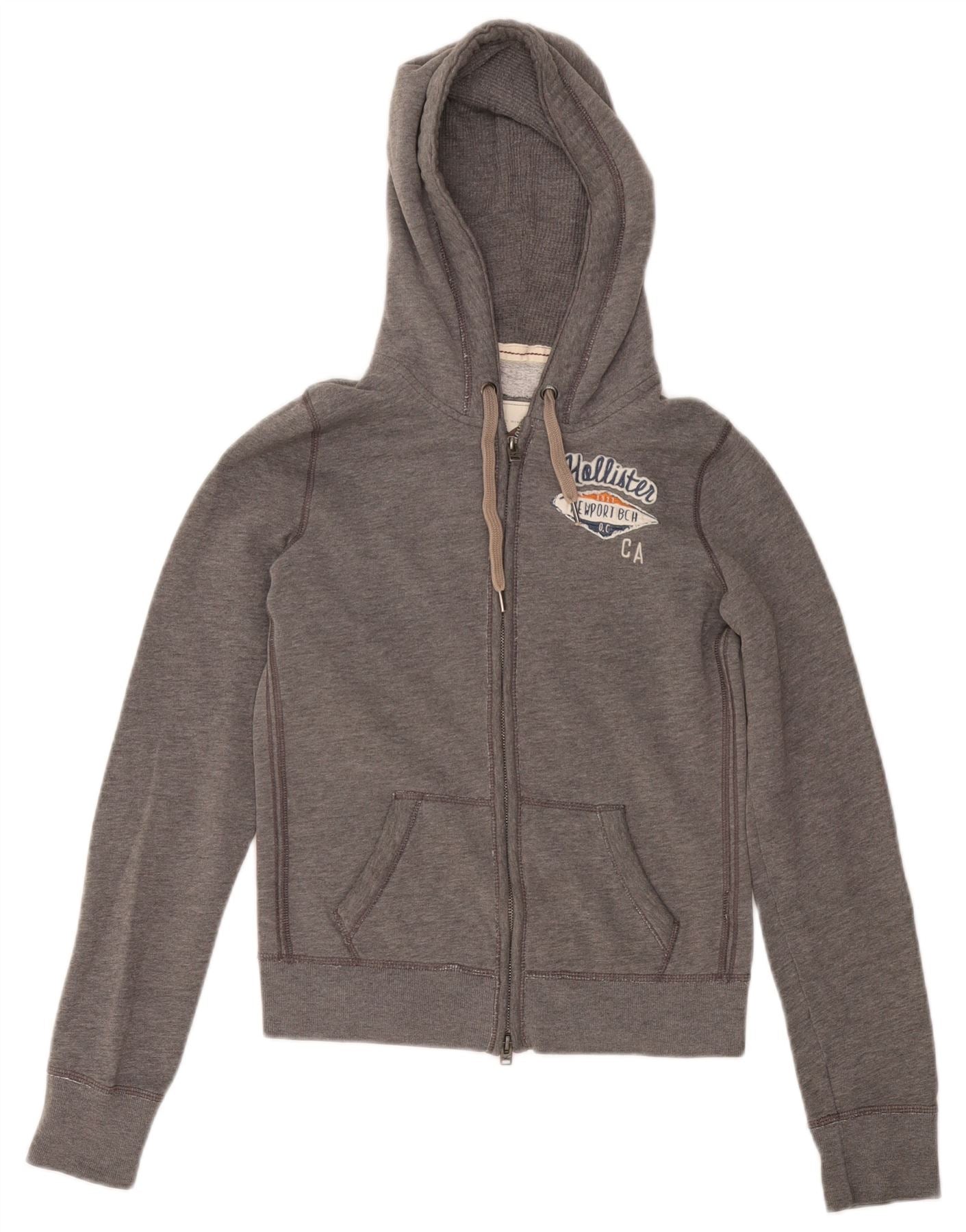 HOLLISTER Pull à capuche zippé graphique pour femme UK 10 Small Gris Coton