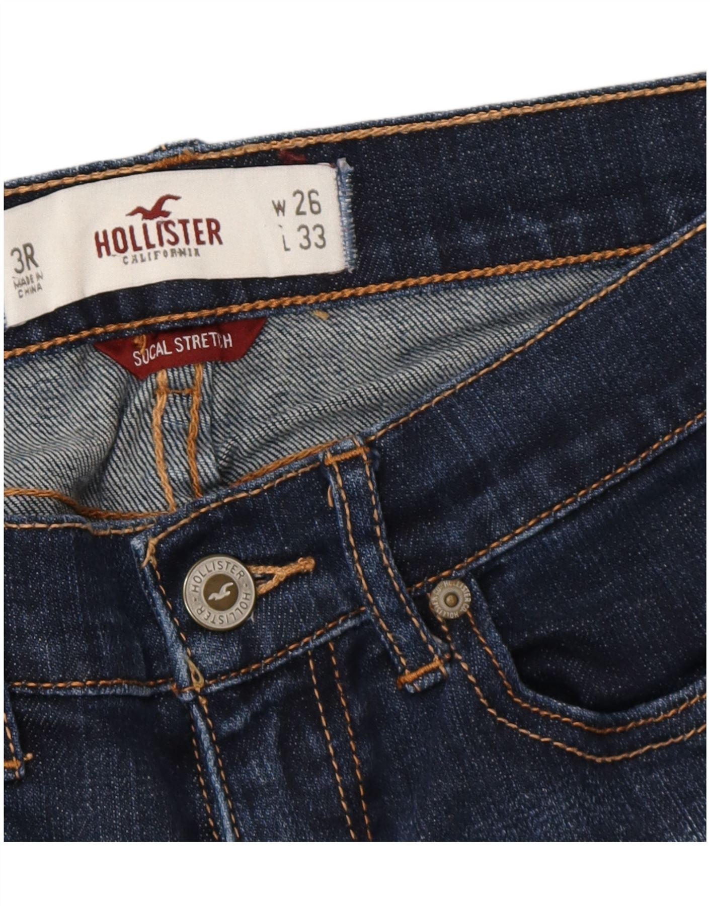 HOLLISTER Jean skinny Socal Stretch effet vieilli pour femme W26 L26 Bleu marine