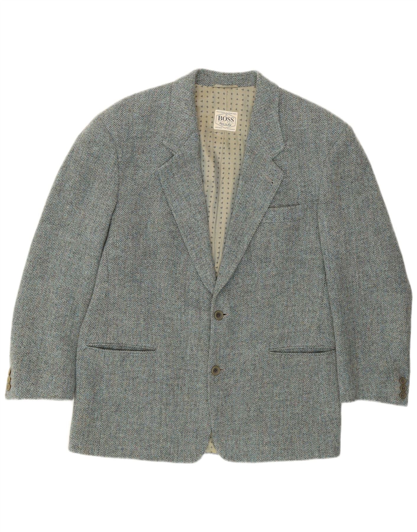 HUGO BOSS Veste Blazer 2 Boutons Homme IT 52 XL Bleu Chevrons Laine Vierge